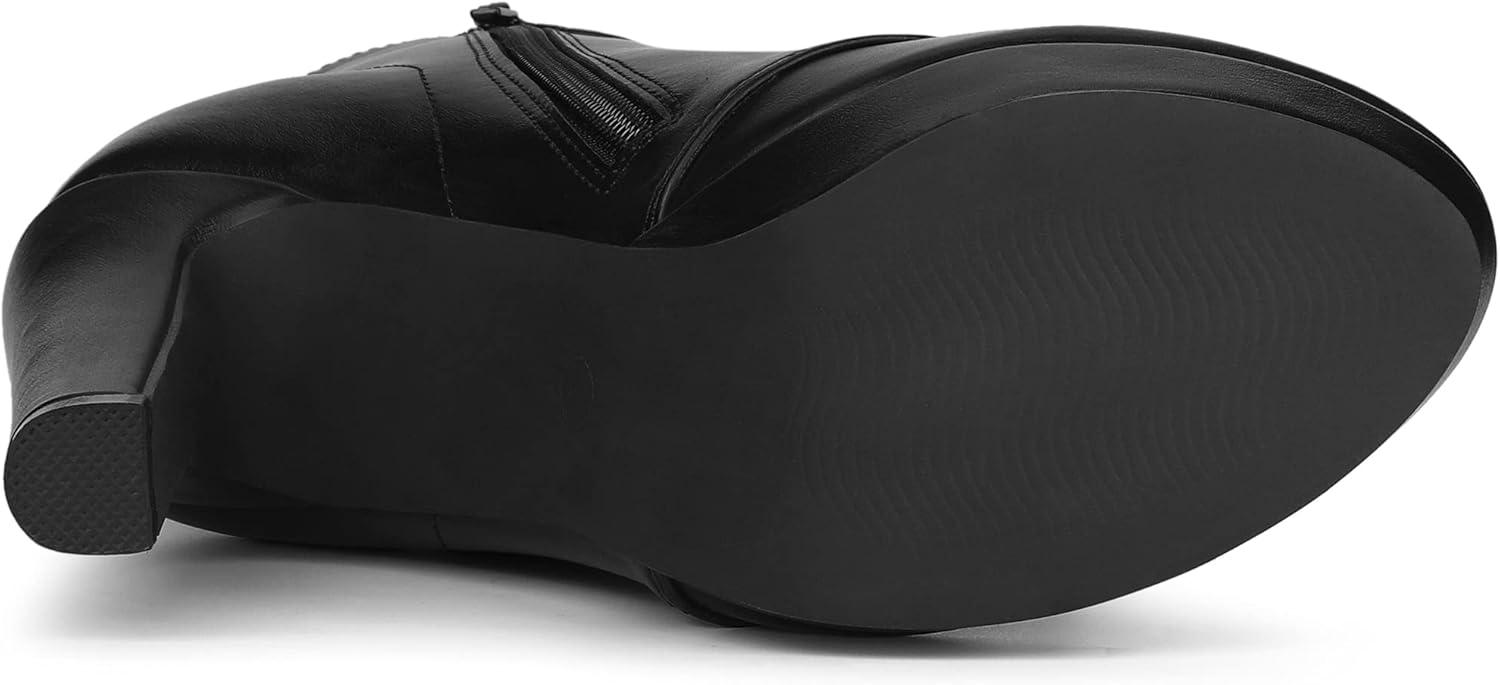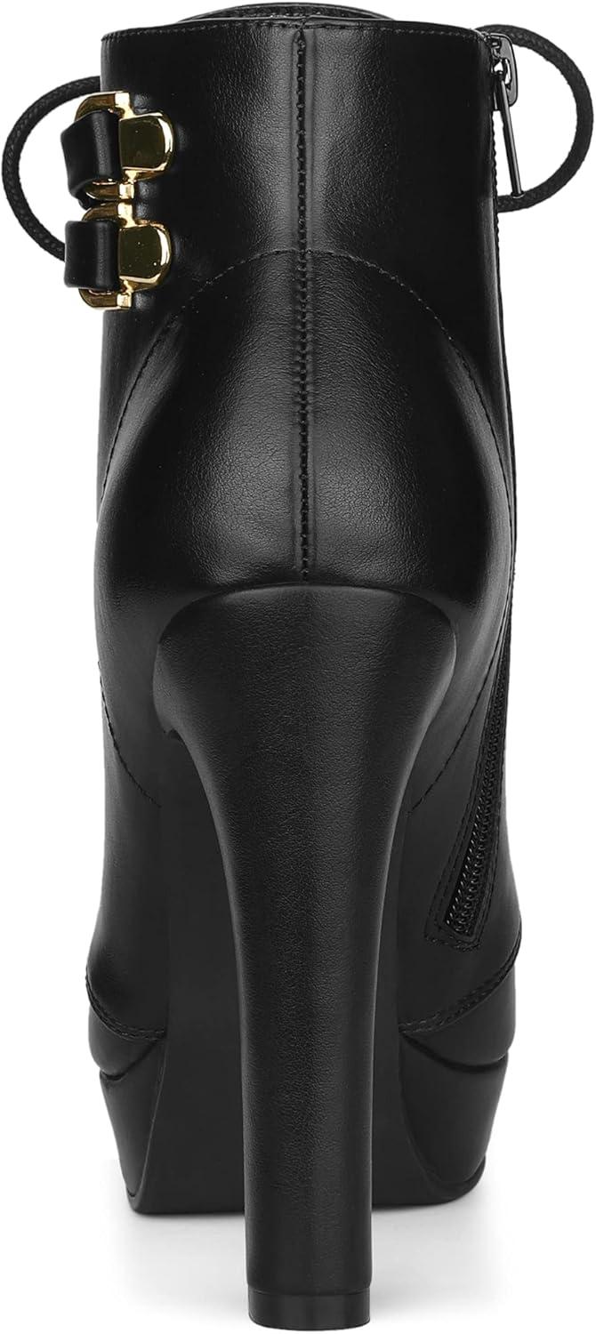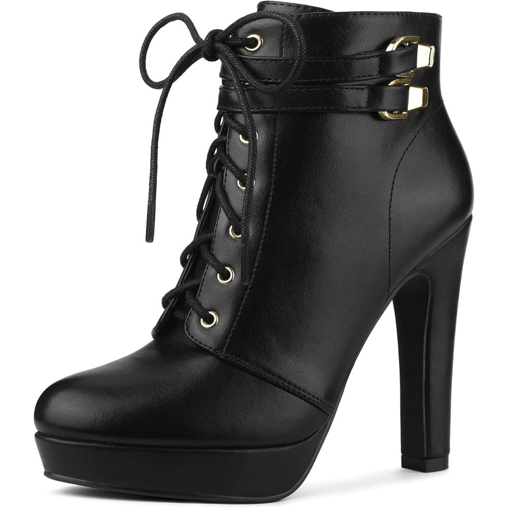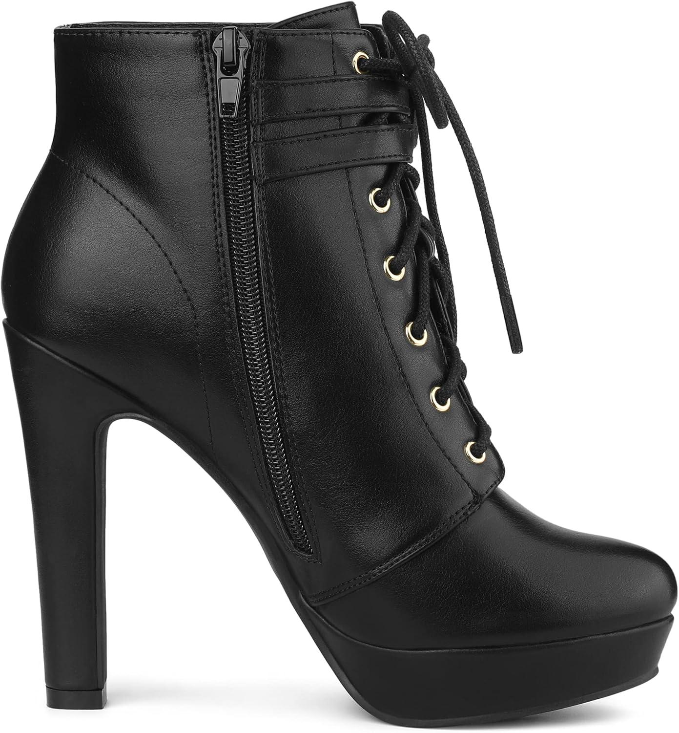 Allegra K Women's Lace Up Strap Platform Block Heels Ankle Boots(Black)