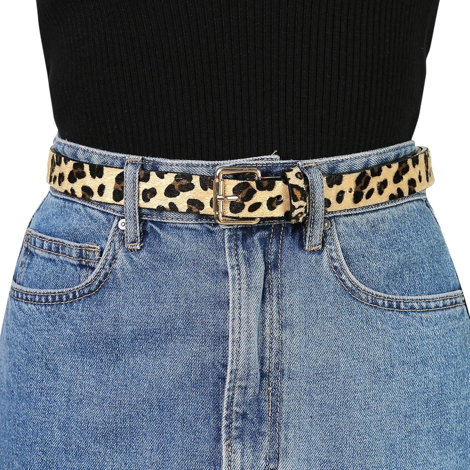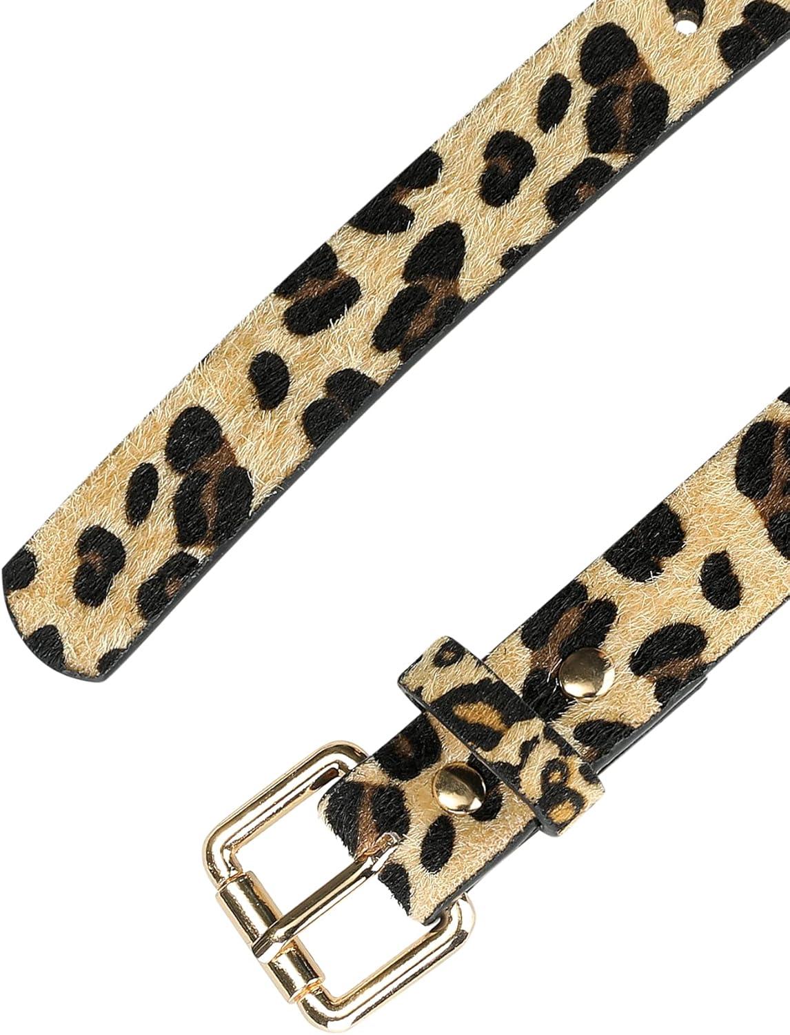 The classic leopard embossed women belt have a metal pin buckle and match keeper.