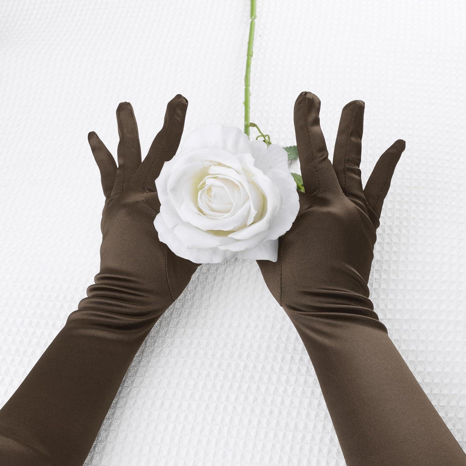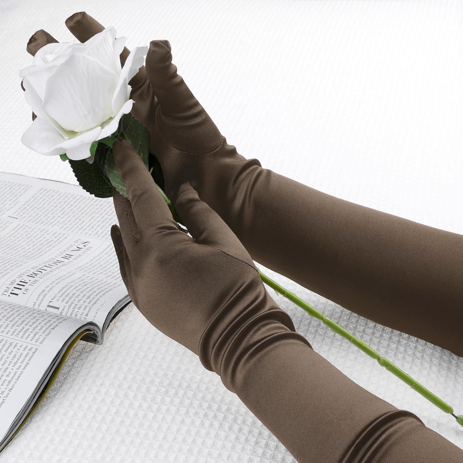Allegra K Women's Long Gloves 1920S Evening Party Full Finger Mittens Elegant Opera Glove(Coffee)
