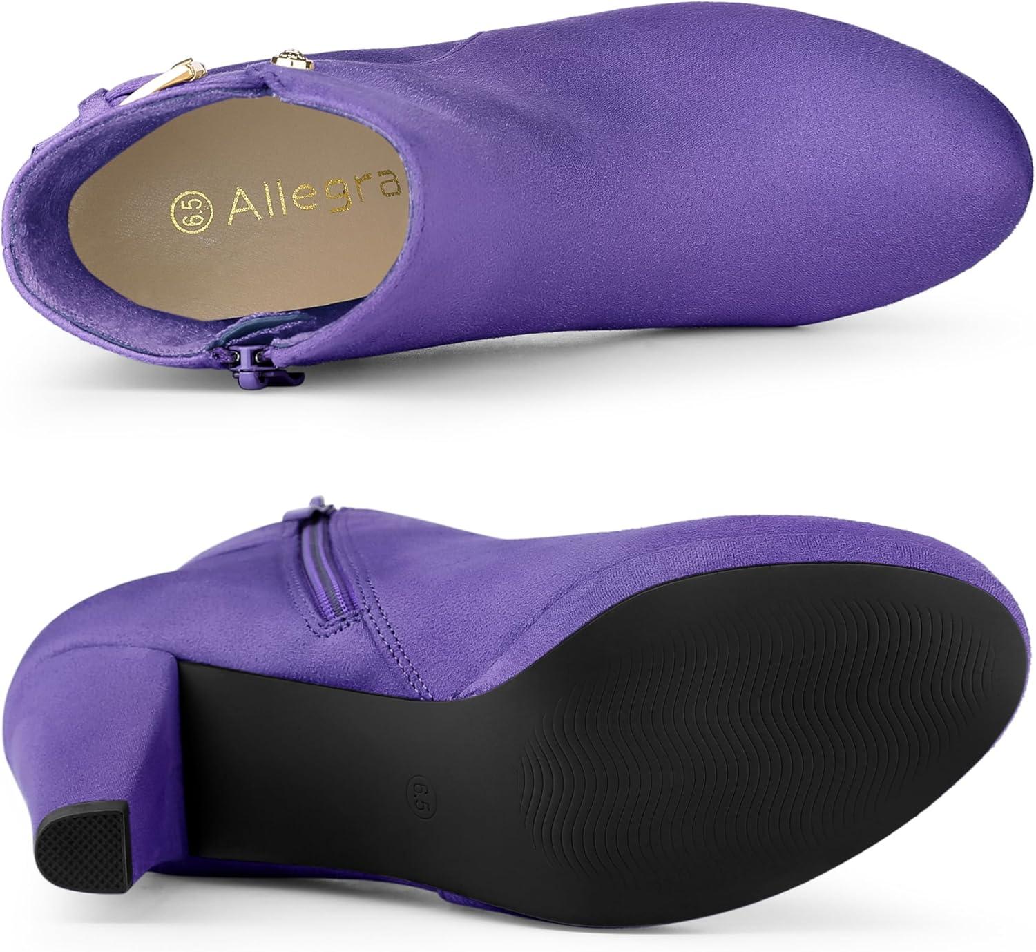 Allegra K Women’s Low Platform Side Zip Buckle Chunky High Heel Ankle Booties(Purple)