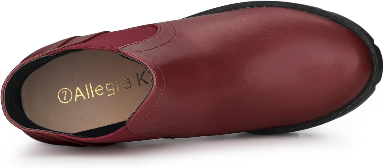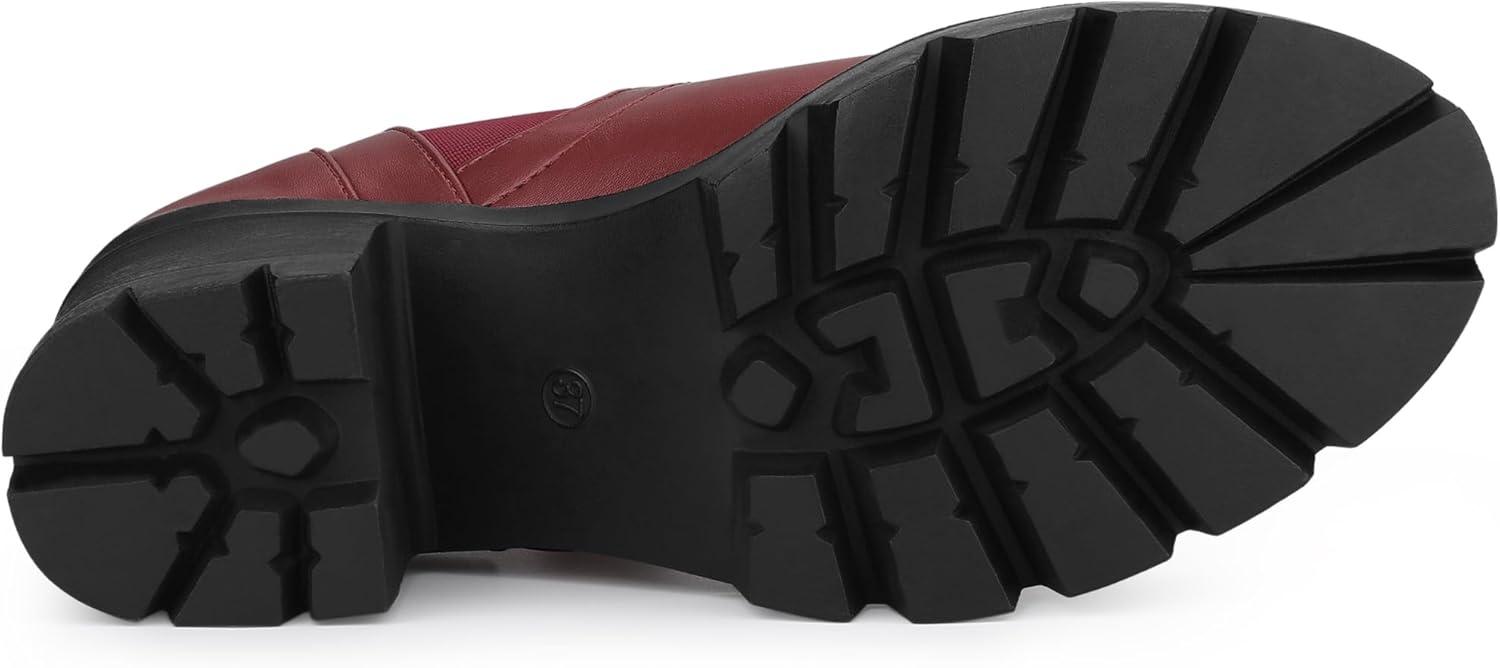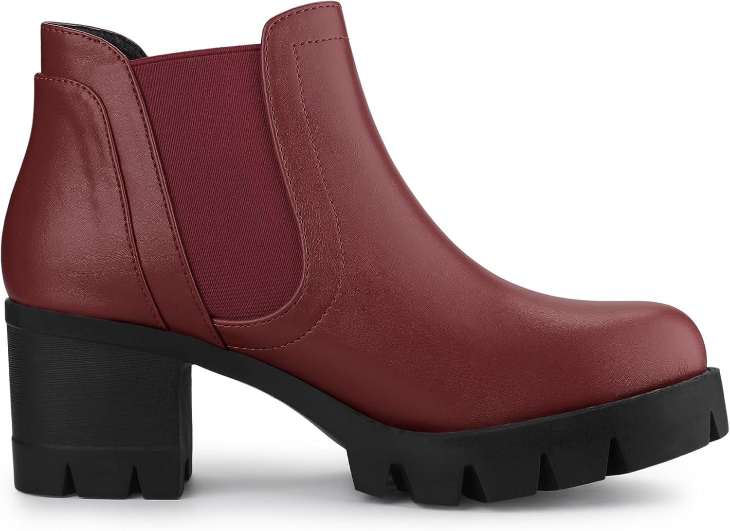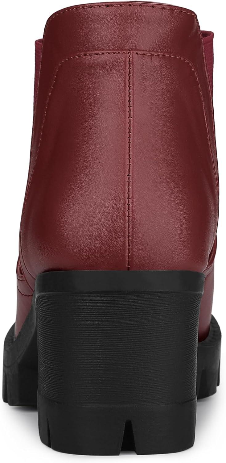 Allegra K Women's Lug Sole Chunky Heel Chelsea Ankle Boots(Burgundy)