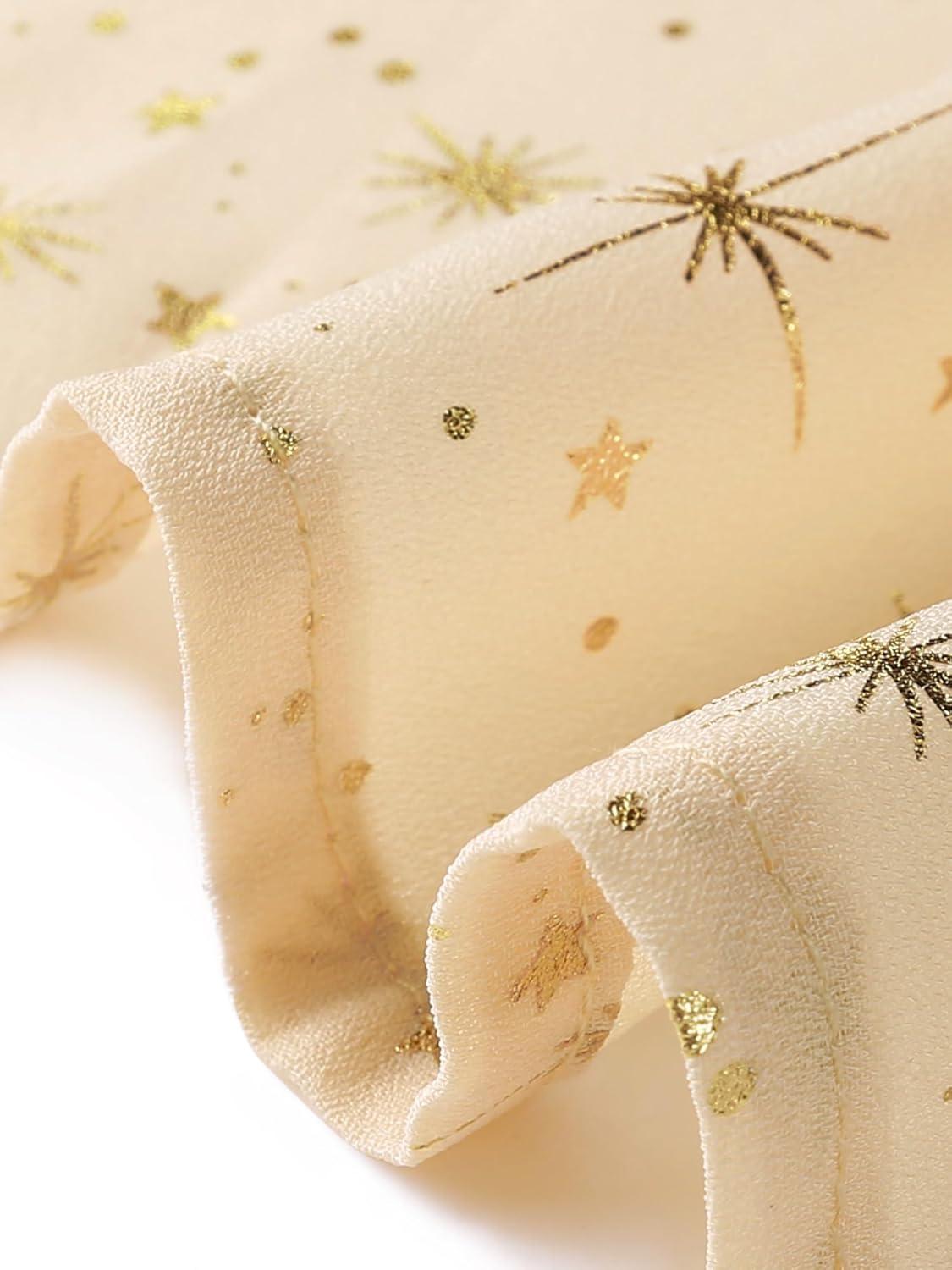 Allegra K Women's Metallic Patterned Blouse V Neck Long Sleeve Gilding Sparkly Dots Star Top(Beige)