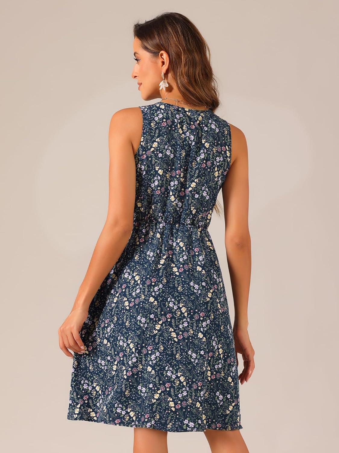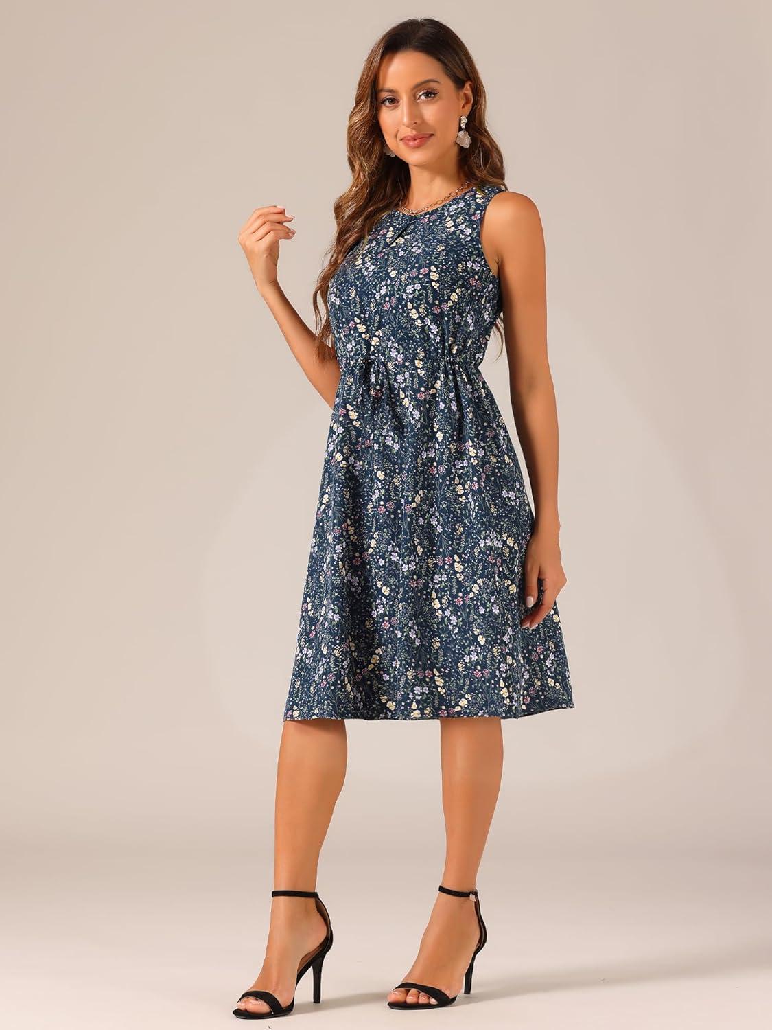 Allegra K Women's Midi Floral Dresses Summer Casual Wedding Guest Sleeveless Dress(Blue Purple)