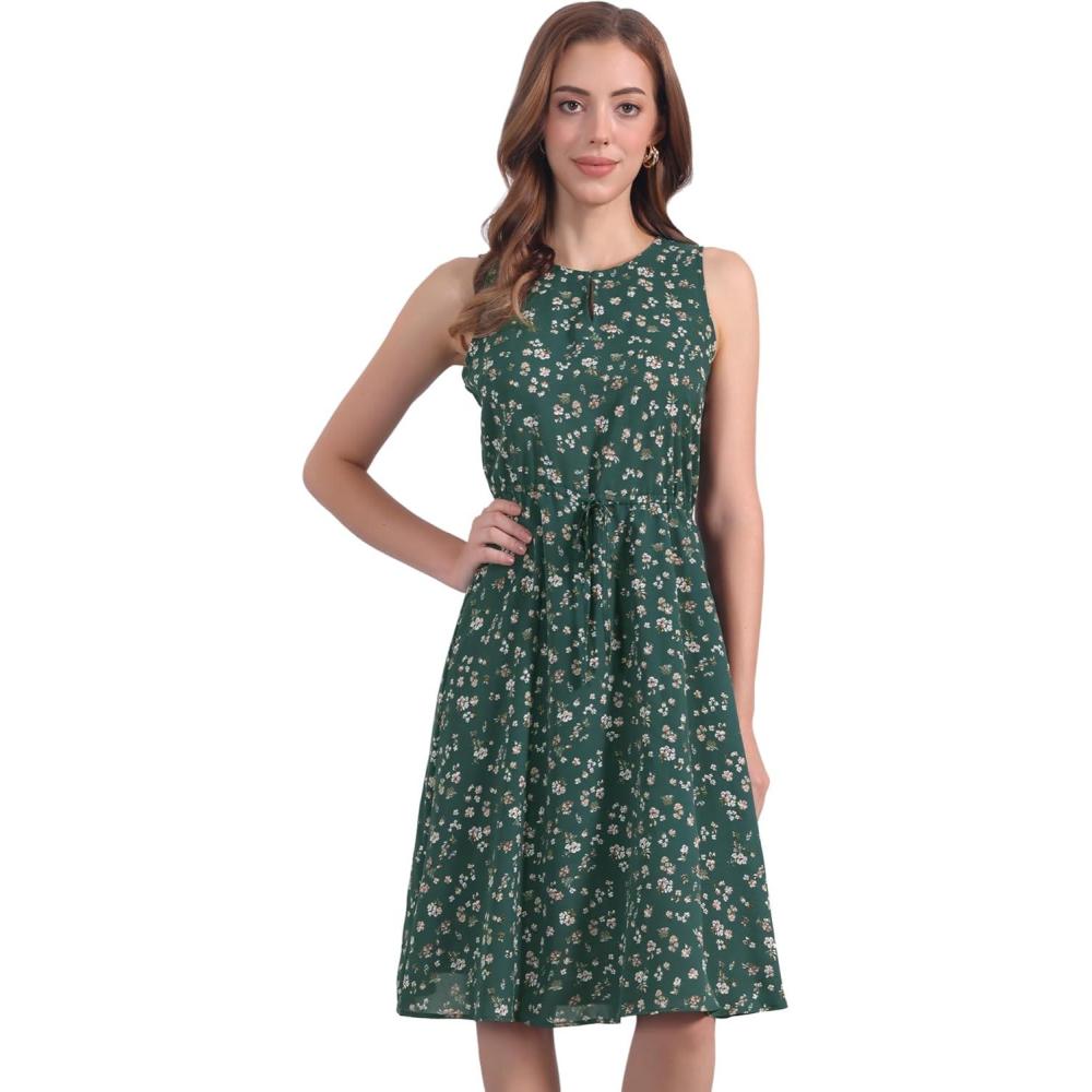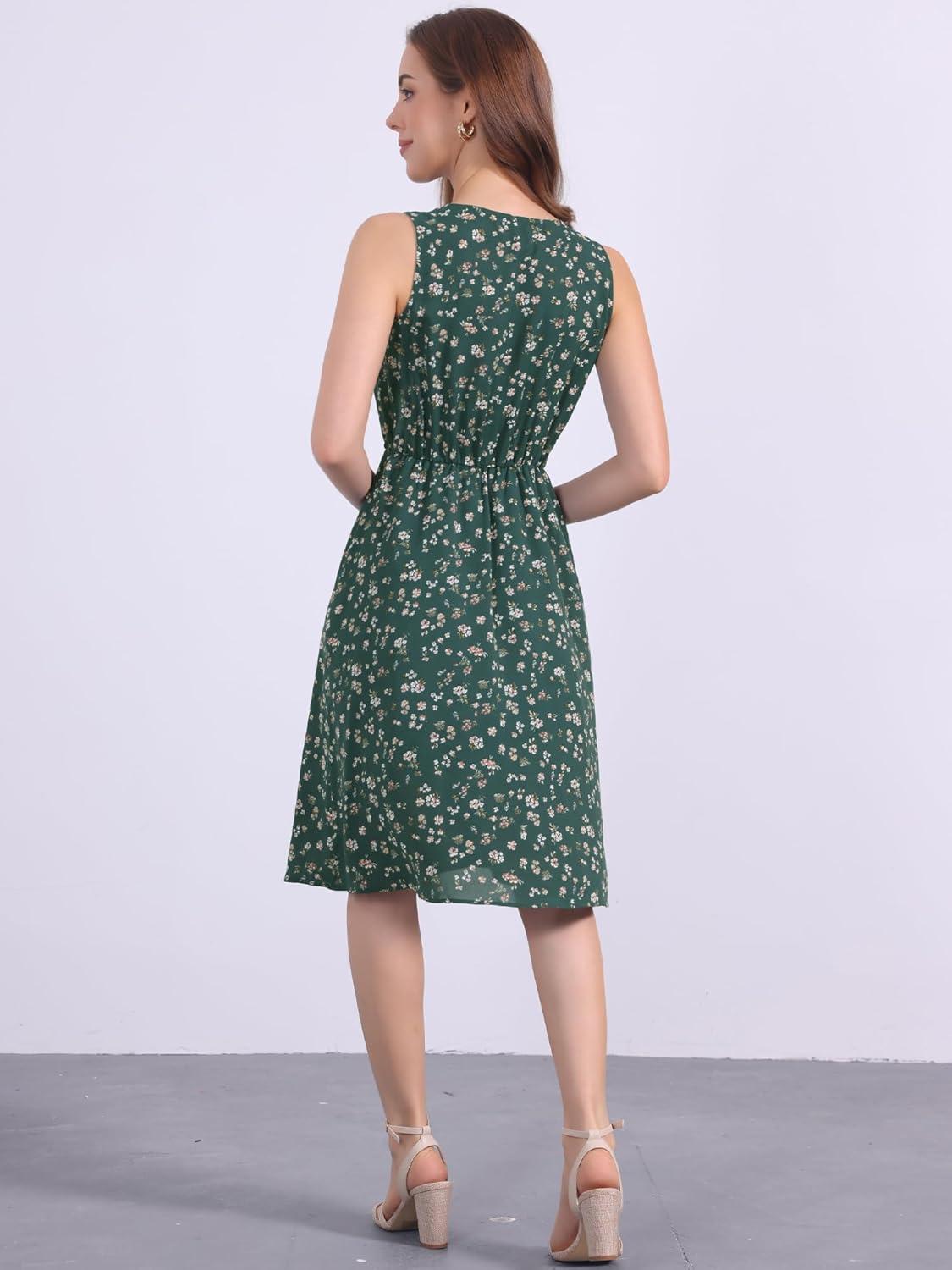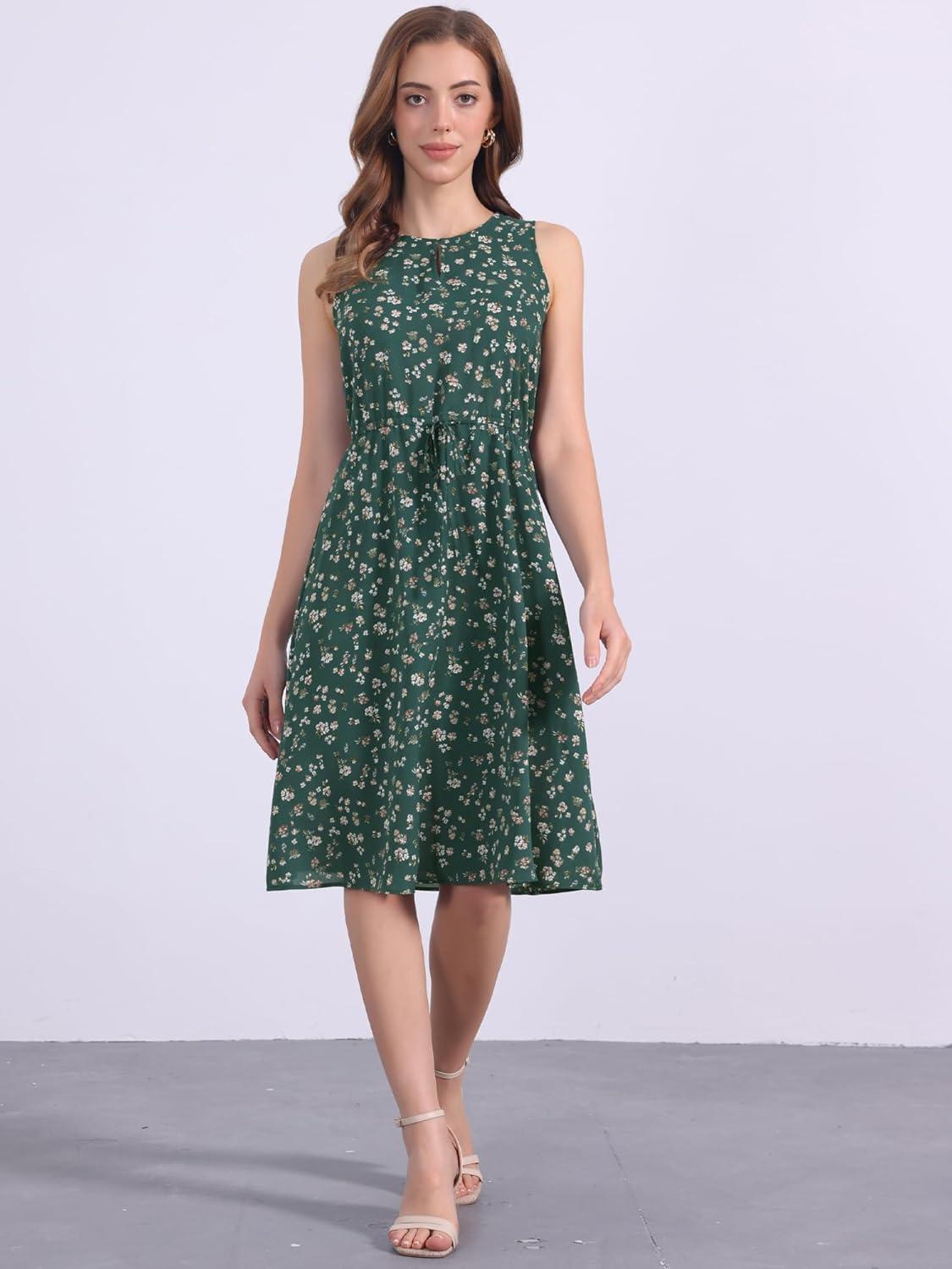 Allegra K Women’s Midi Floral Dresses Summer Casual Wedding Guest Sleeveless Dress(Deep Green)