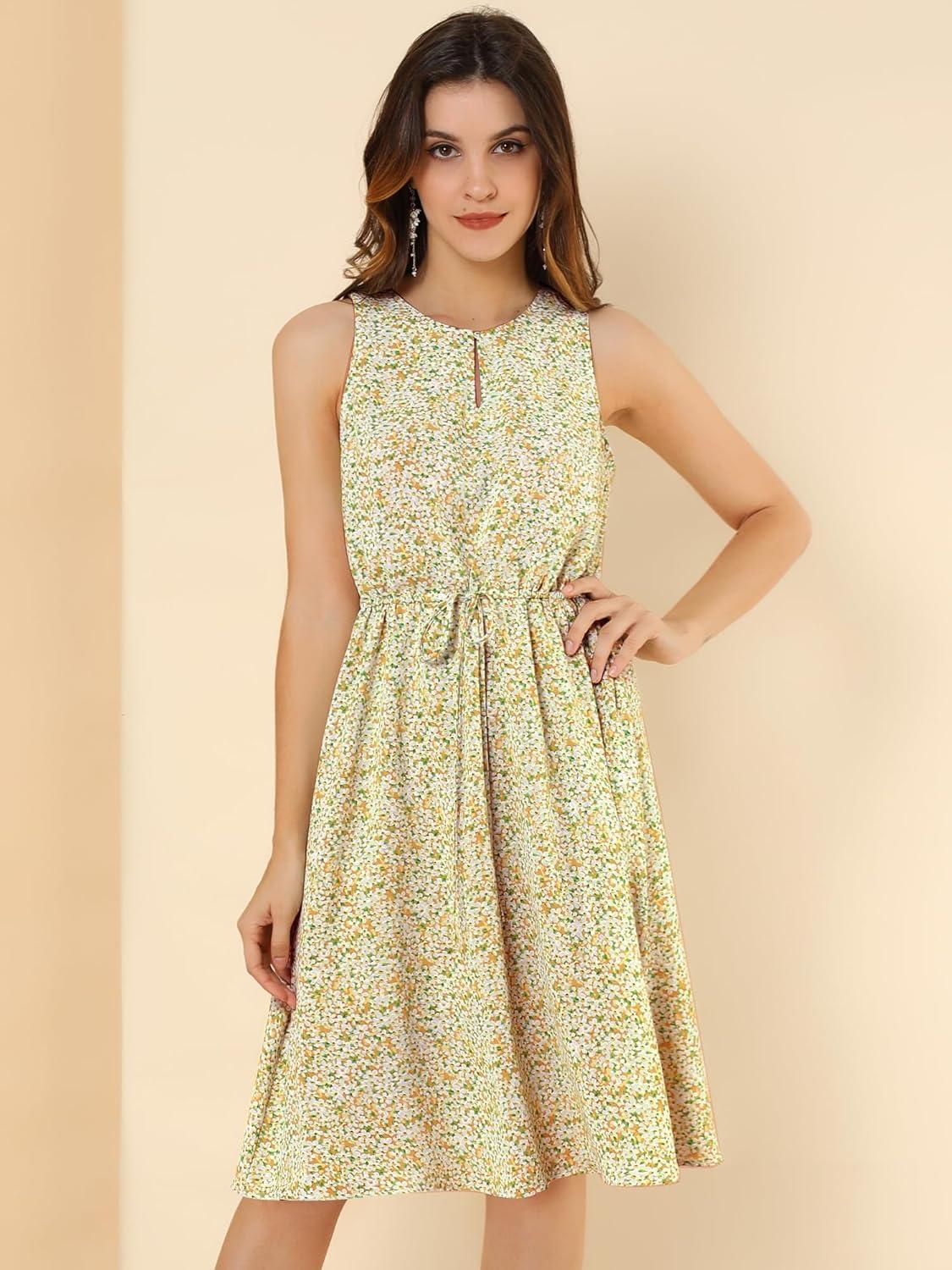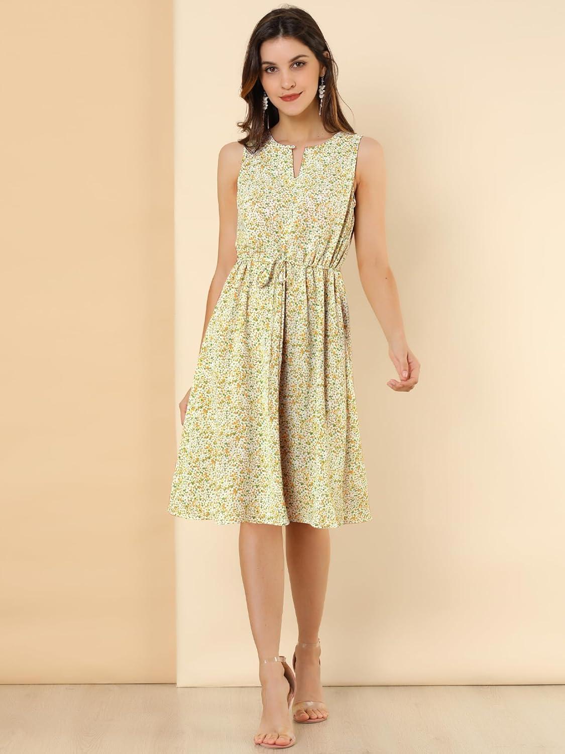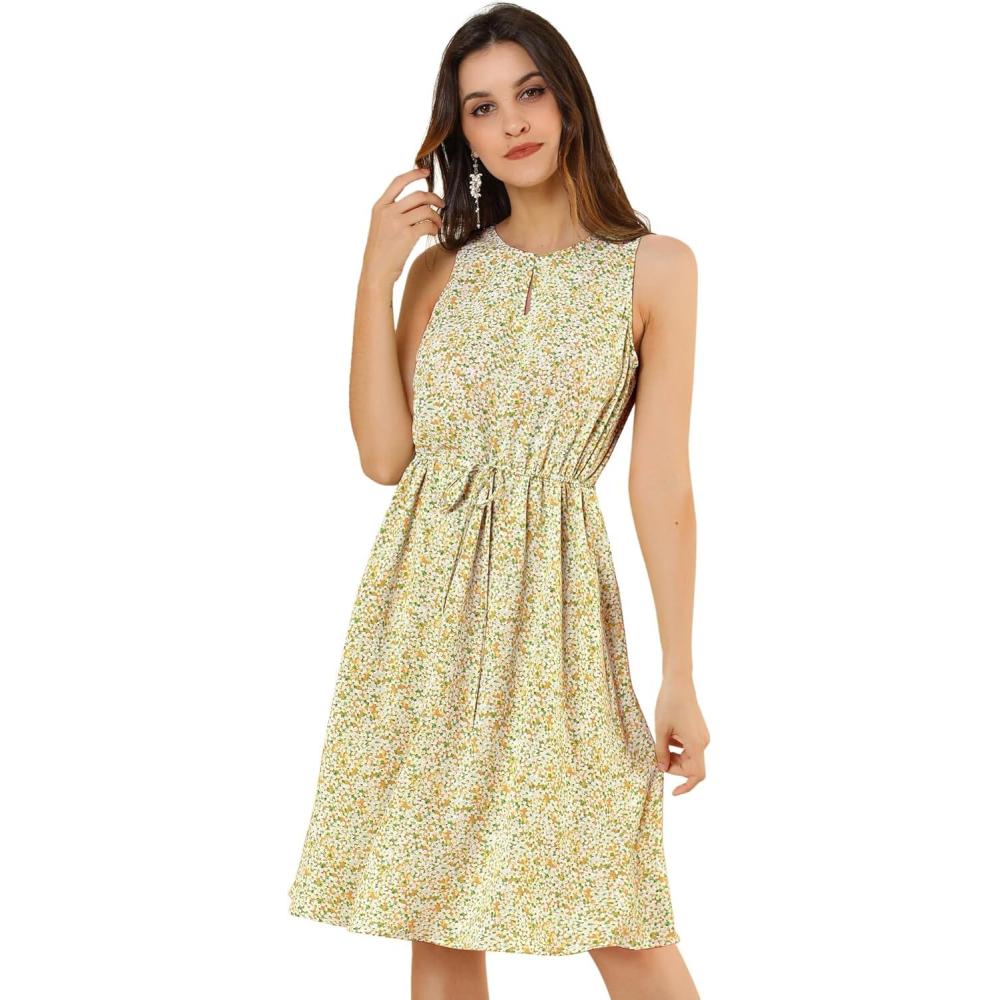 Allegra K Women’s Midi Floral Dresses Summer Casual Wedding Guest Sleeveless Dress(Light Yellow)