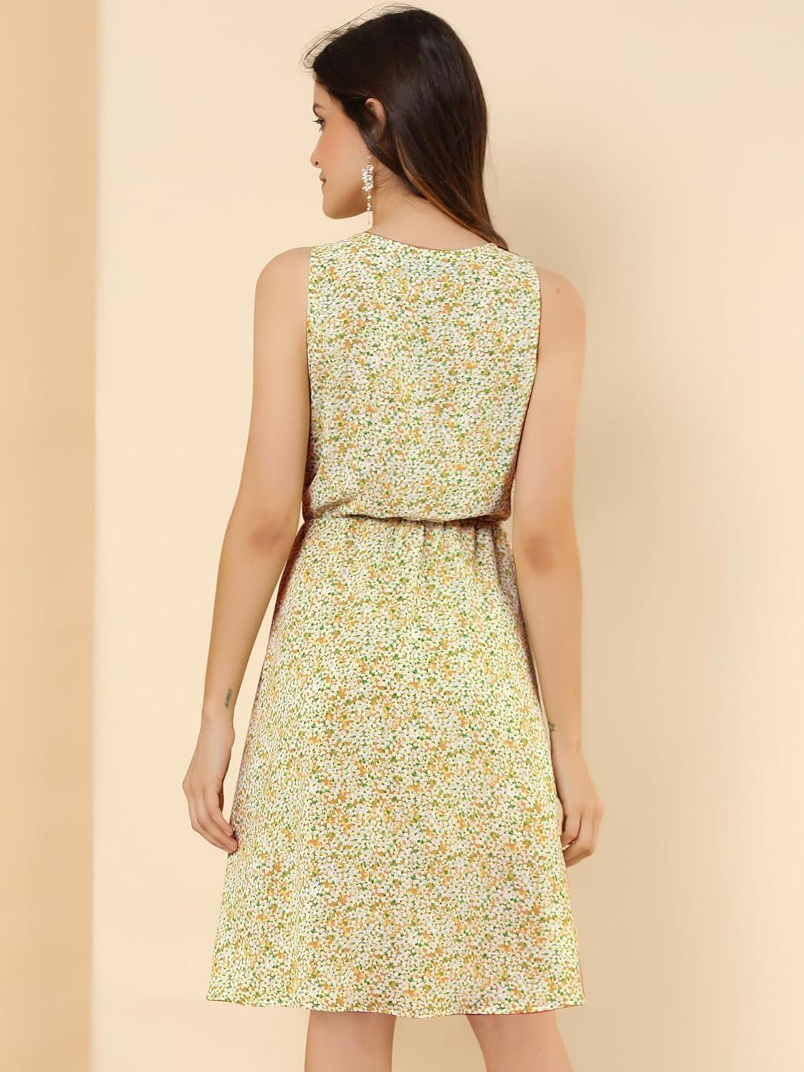 Allegra K Women’s Midi Floral Dresses Summer Casual Wedding Guest Sleeveless Dress(Dark Green)