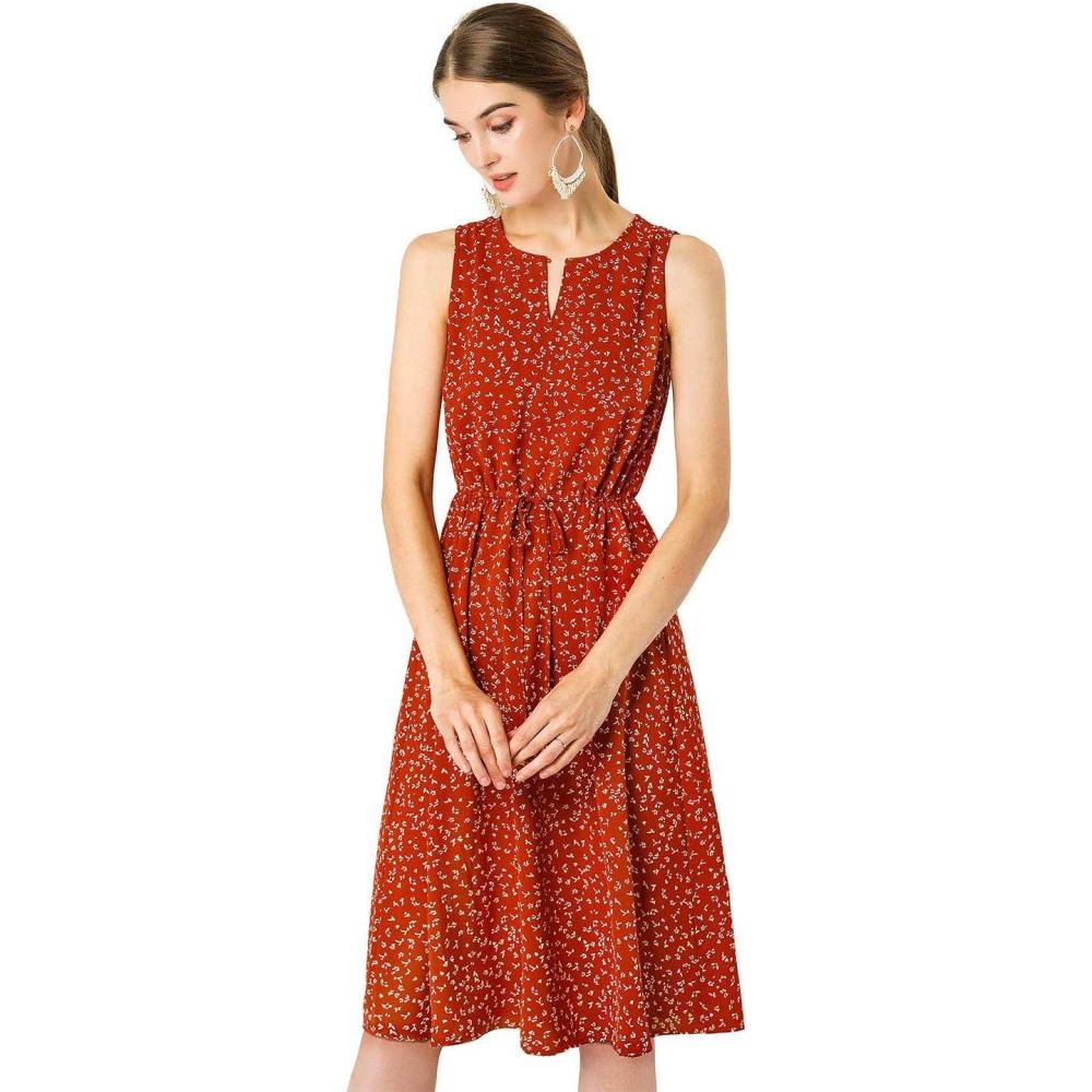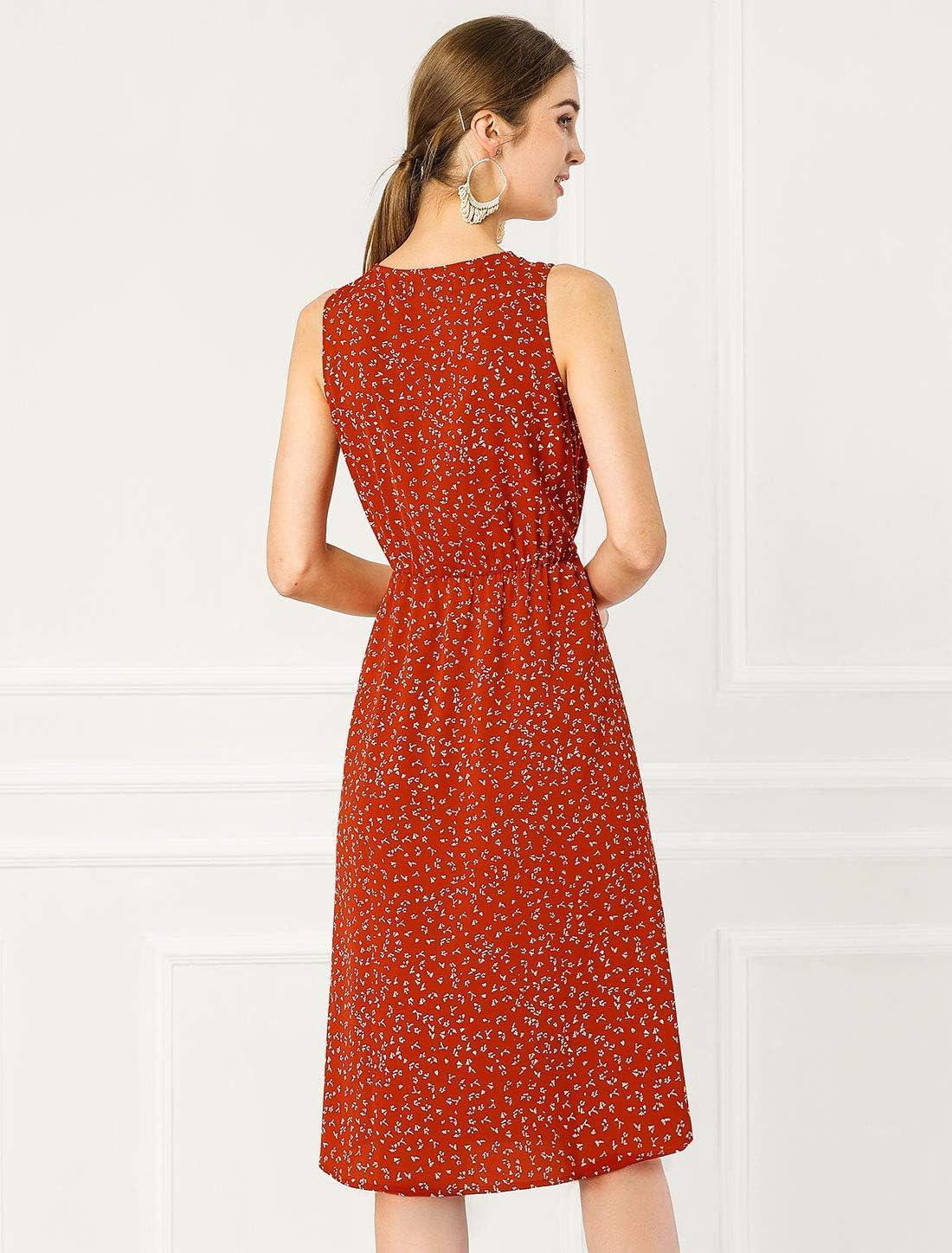 imageAllegra K Womens Midi Floral Dresses Summer Casual Wedding Guest Sleeveless DressRed