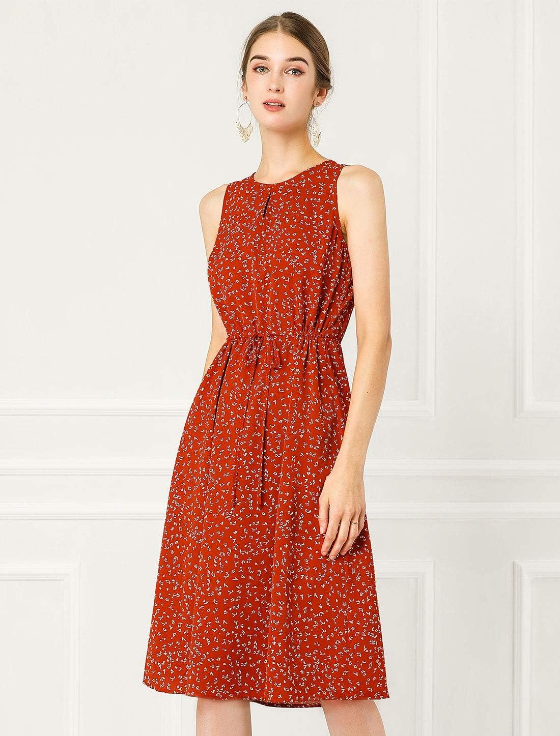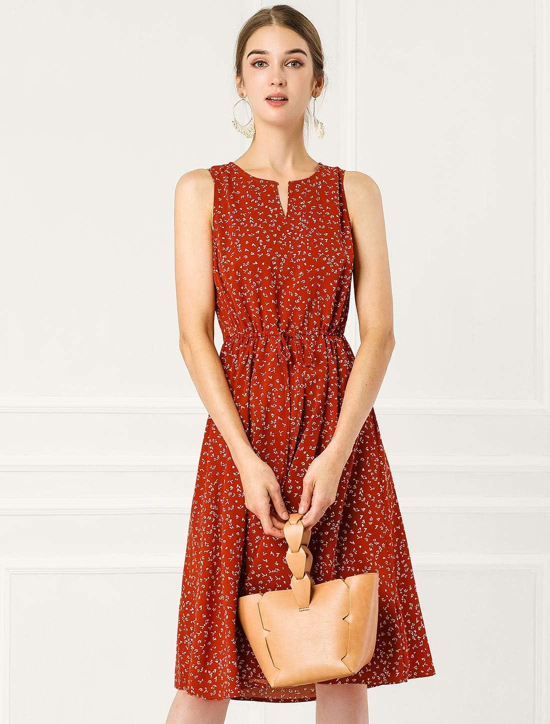 Allegra K Women's Midi Floral Dresses Summer Casual Wedding Guest Sleeveless Dress(Red)