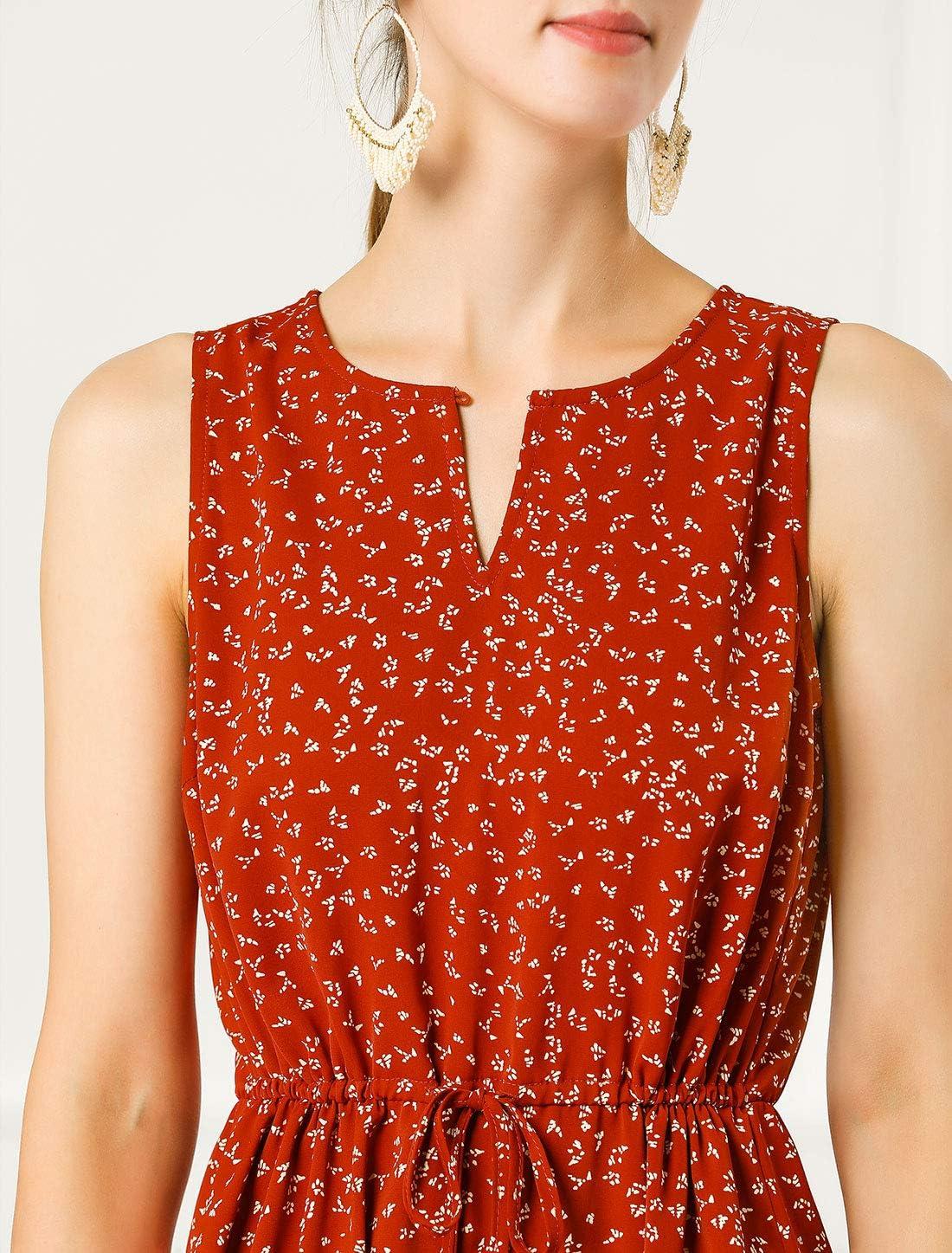 Allegra K Women’s Midi Floral Dresses Summer Casual Wedding Guest Sleeveless Dress(Red)