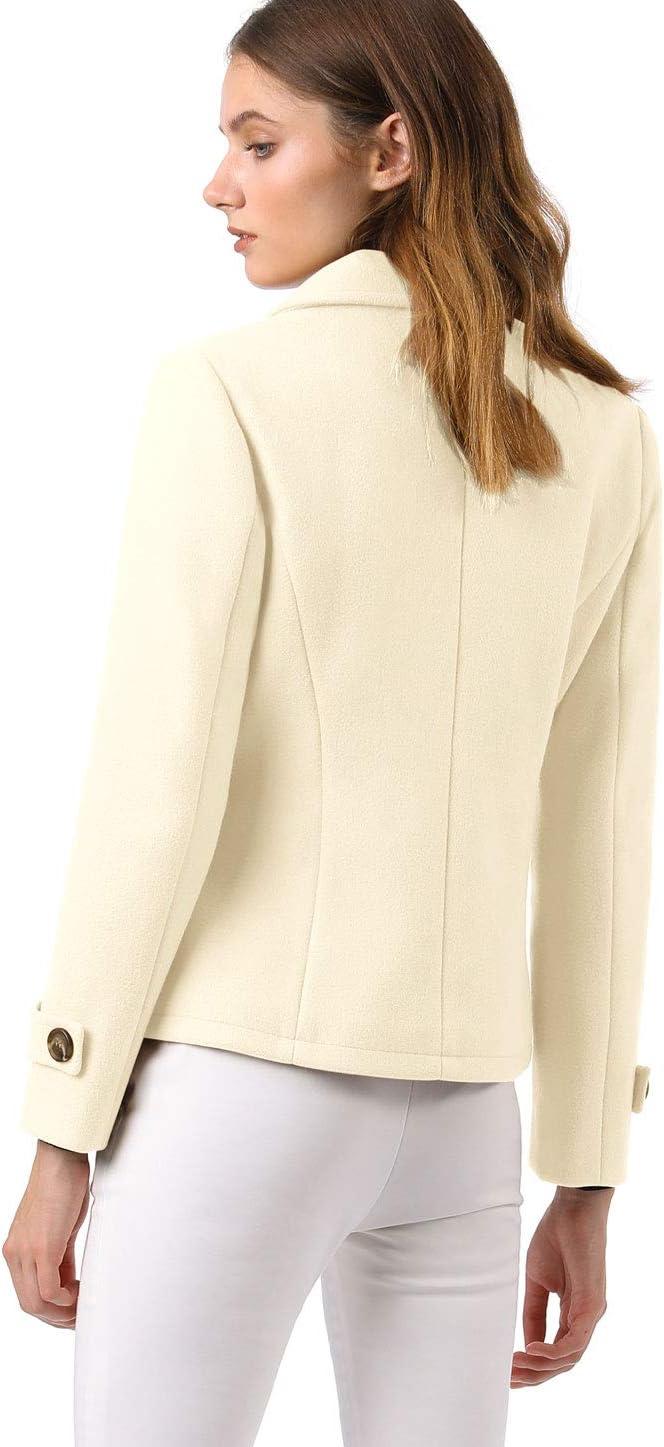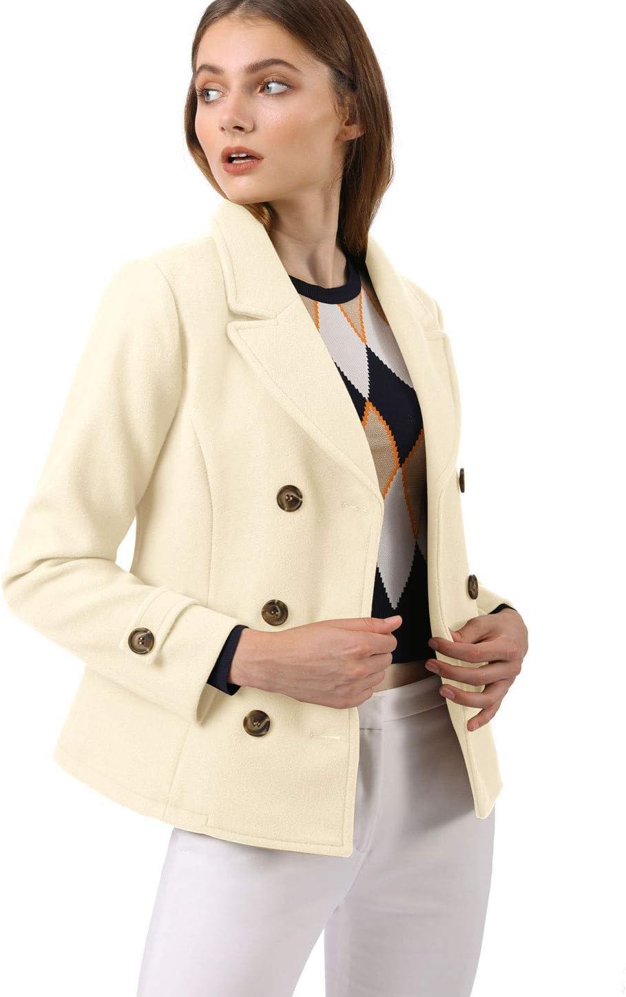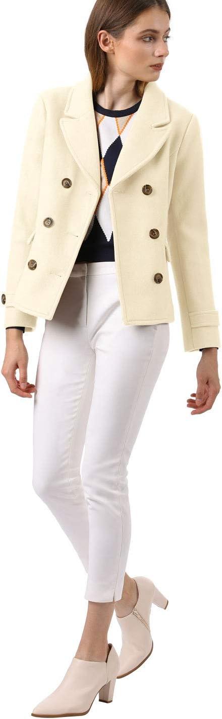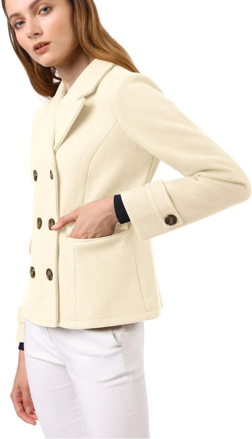 Allegra K Women’s Notched Lapel Double Breasted Pea Coat(Beige)