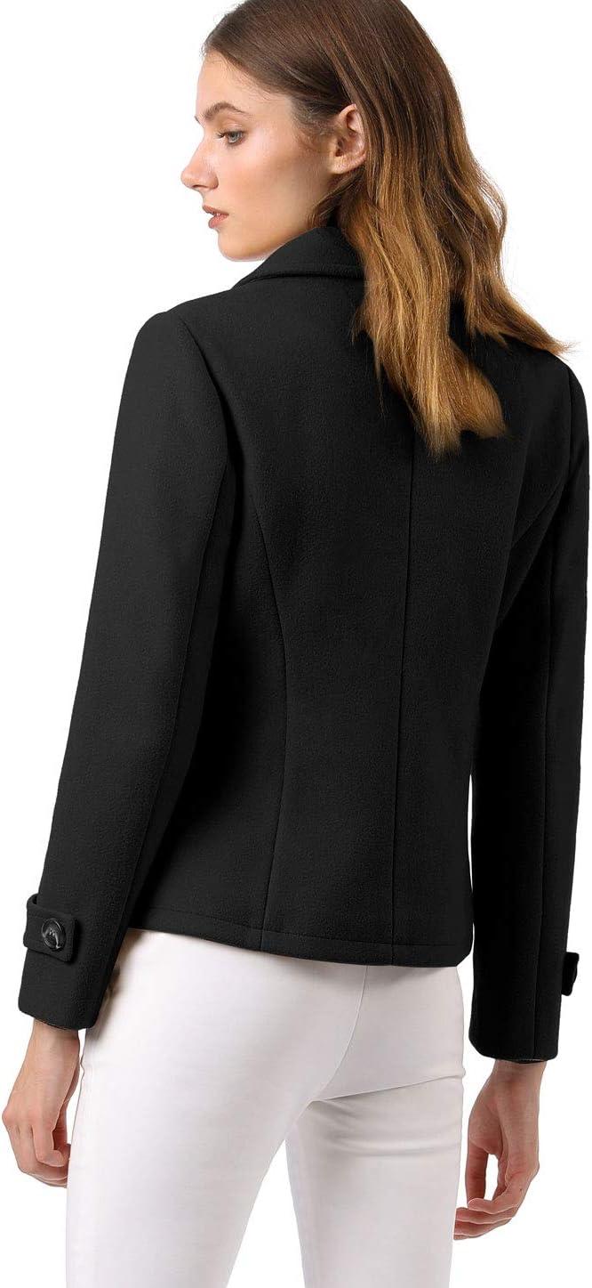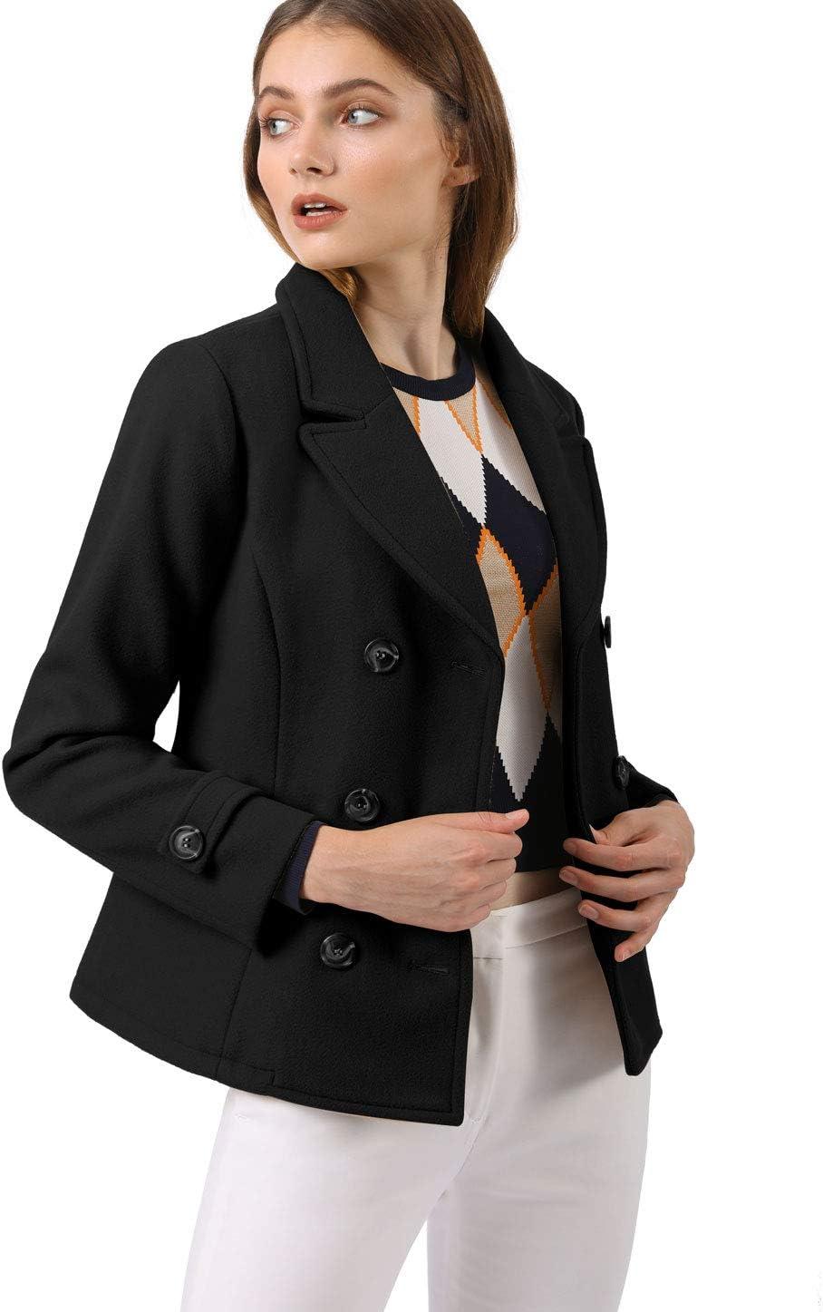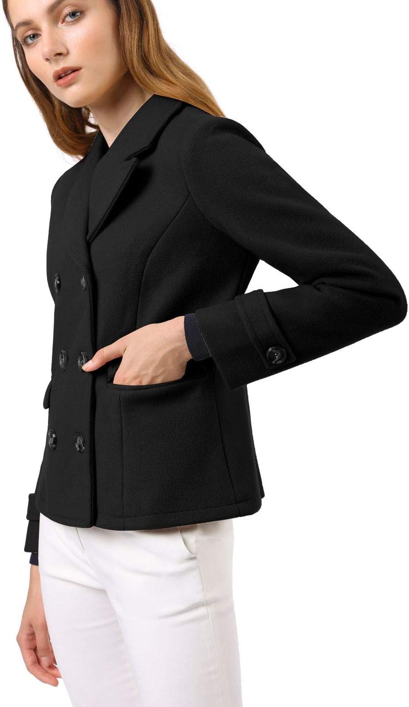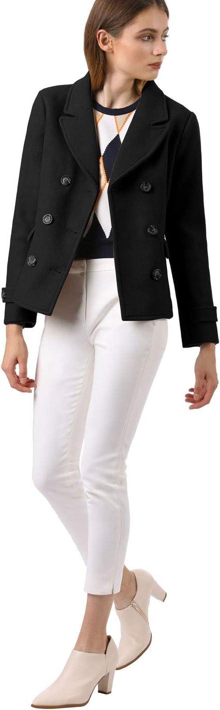 Allegra K Women’s Notched Lapel Double Breasted Pea Coat(Black)