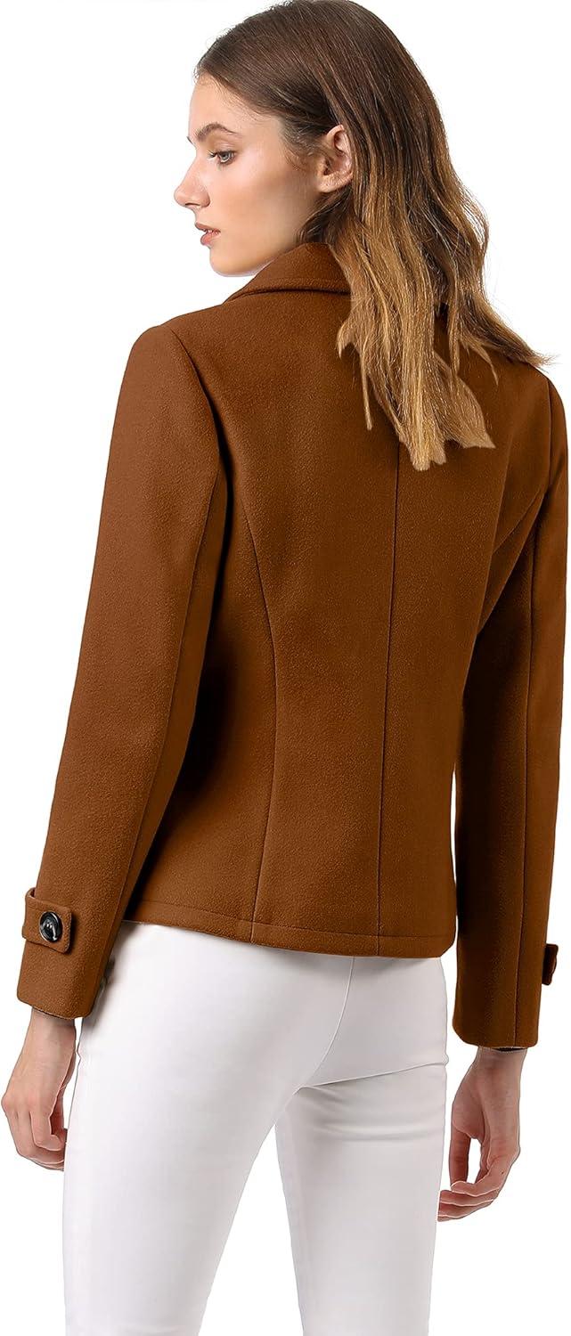 Allegra K Women's Notched Lapel Double Breasted Pea Coat(Dark Brown)
