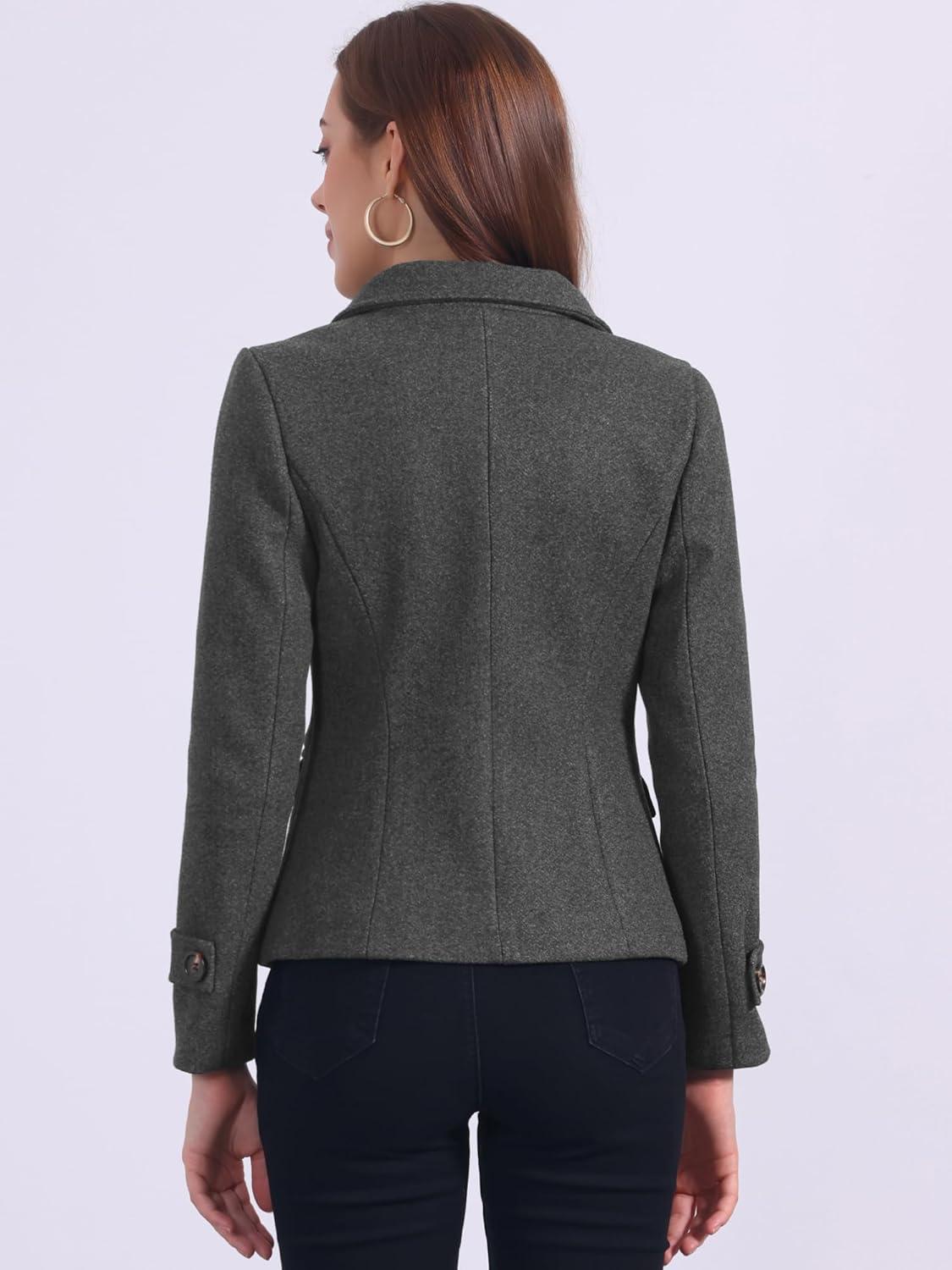 Allegra K Women's Notched Lapel Double Breasted Pea Coat(Dark Gray)