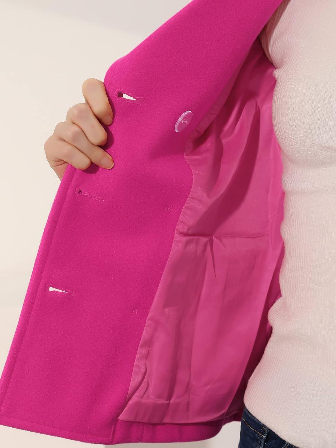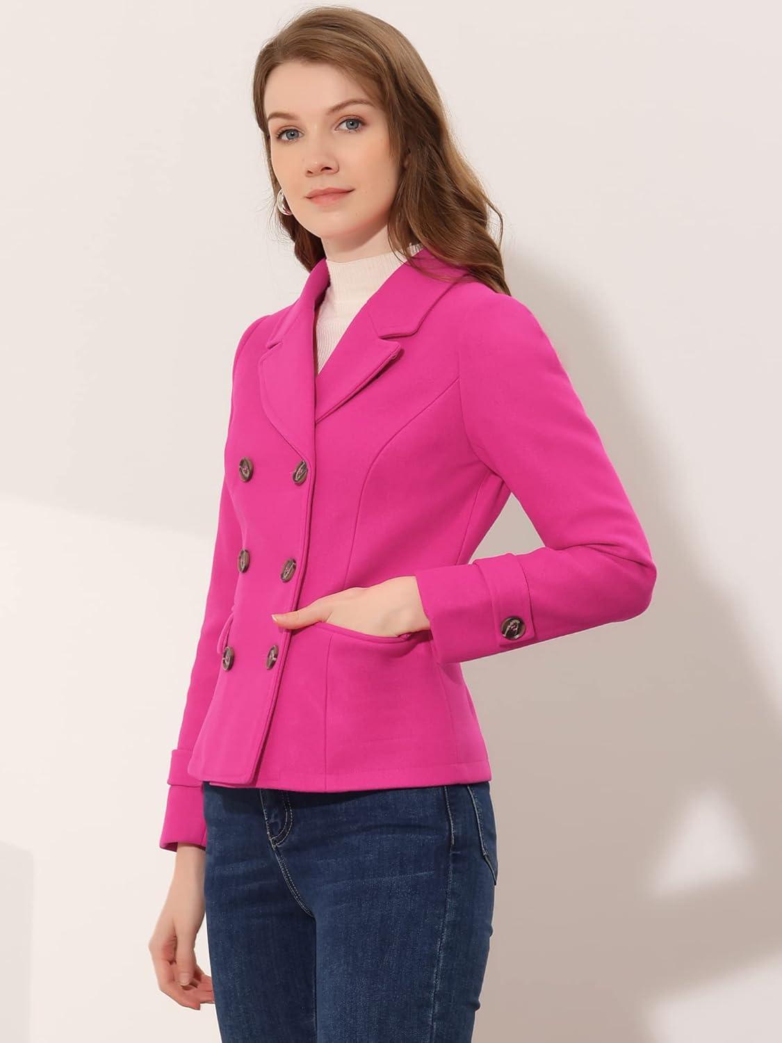 Allegra K Women’s Notched Lapel Double Breasted Pea Coat(Hot Pink)