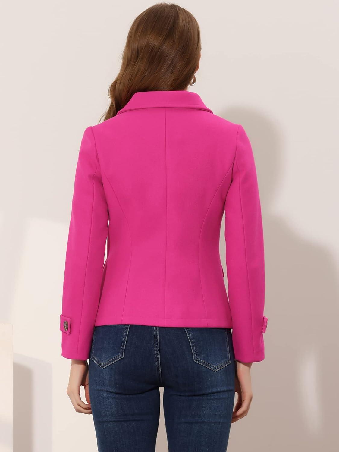 Allegra K Women's Notched Lapel Double Breasted Pea Coat(Hot Pink)