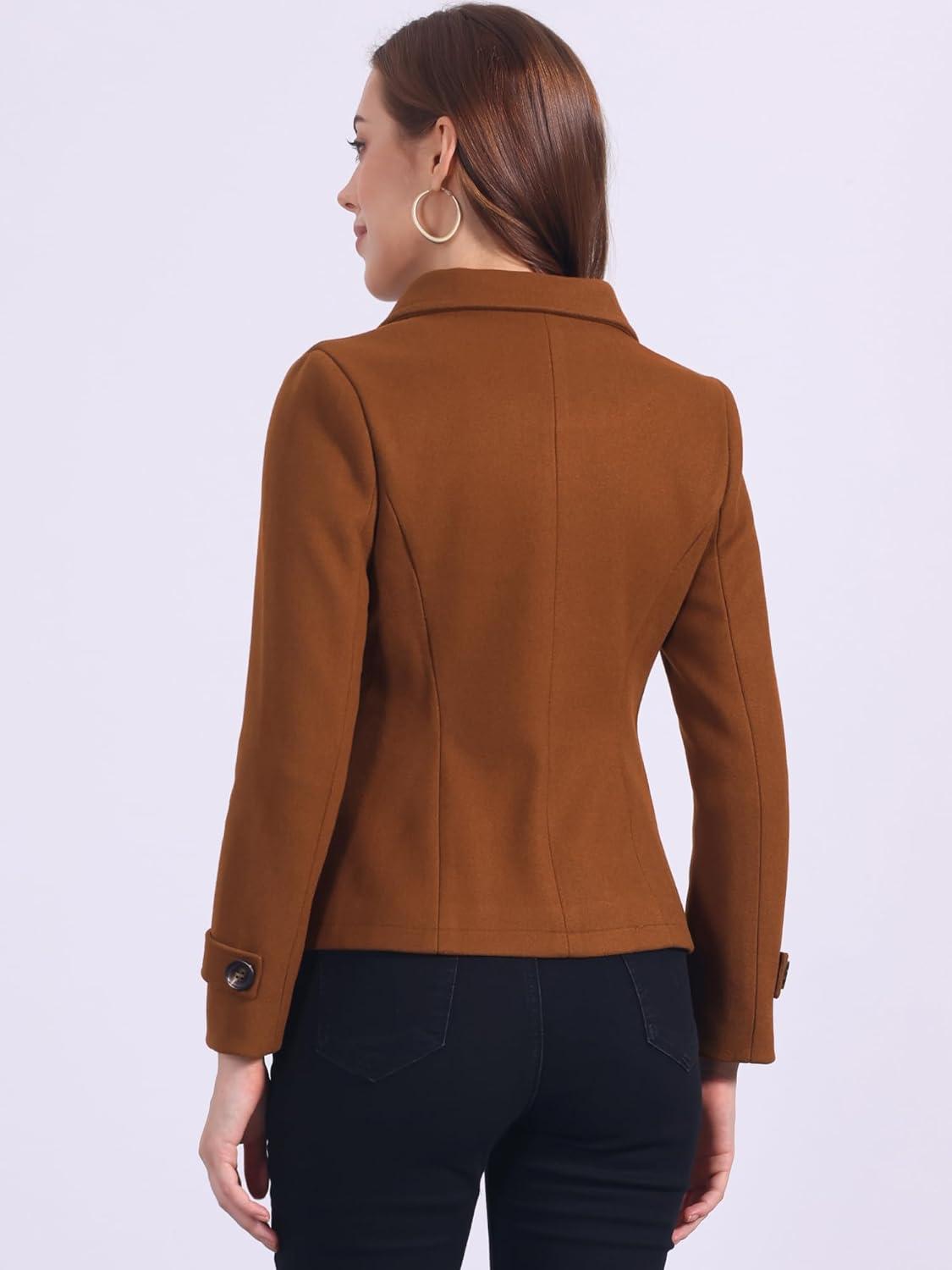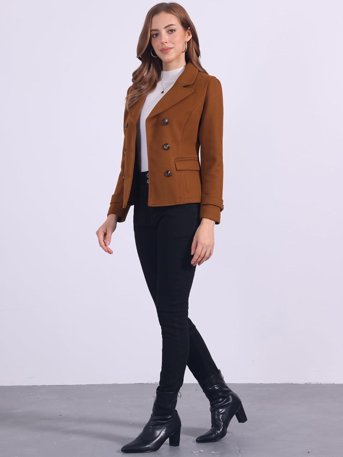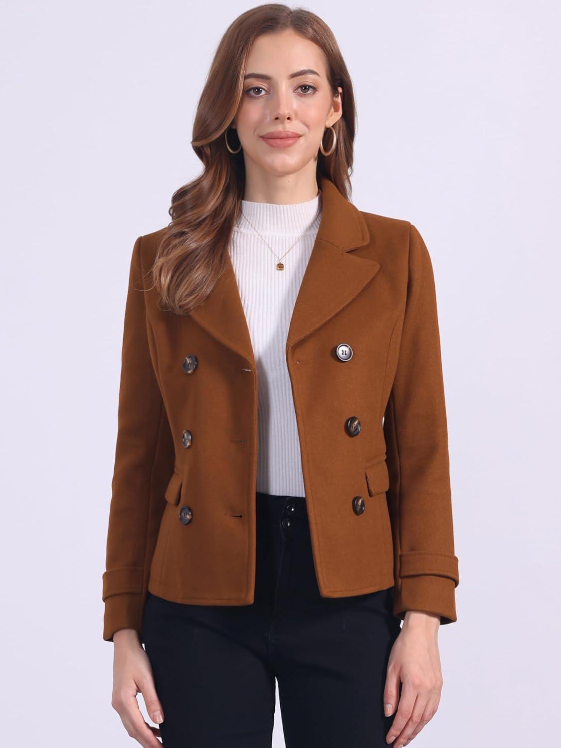 Allegra K Women’s Notched Lapel Double Breasted Pea Coat(Reddish Brown)