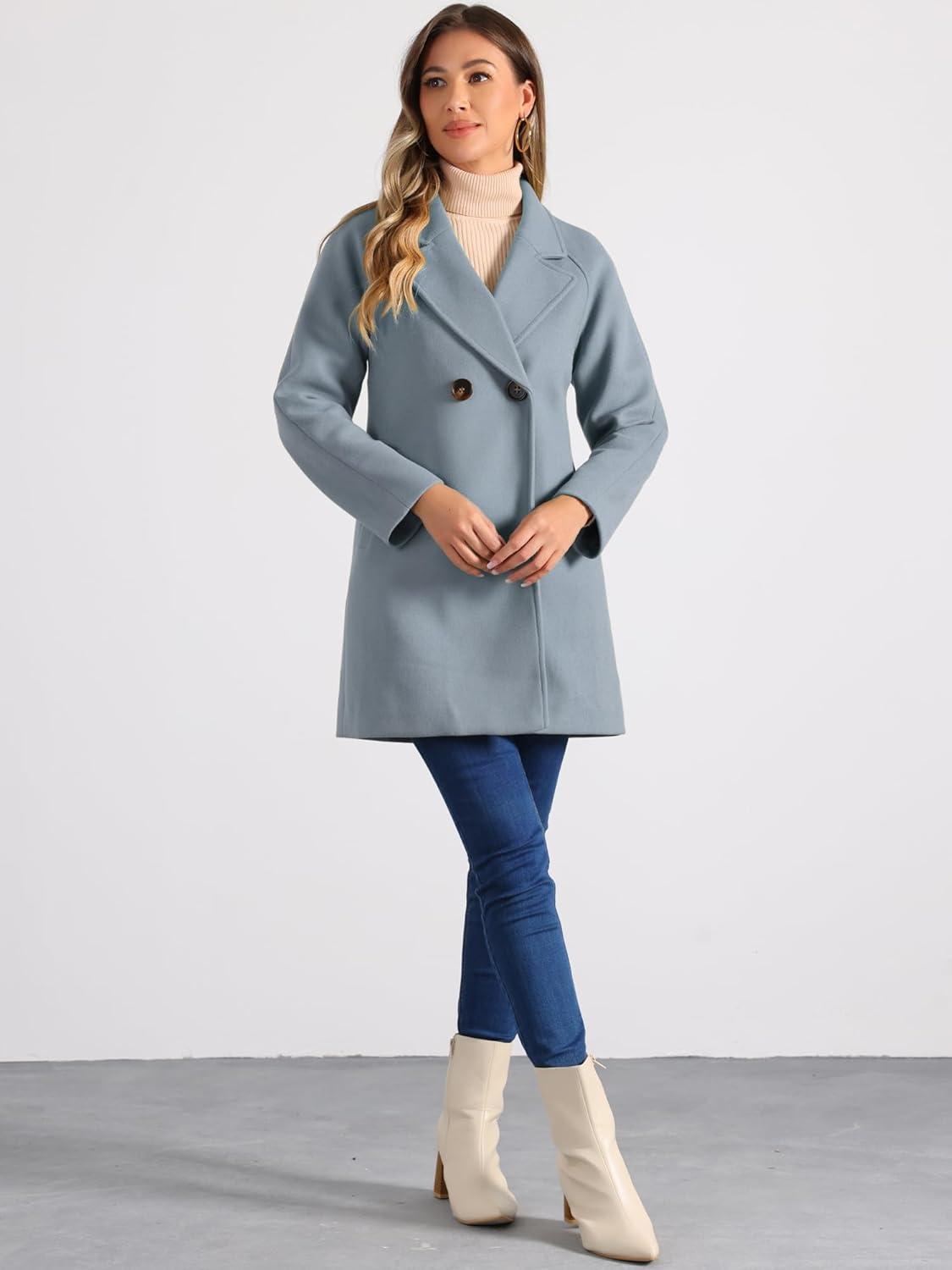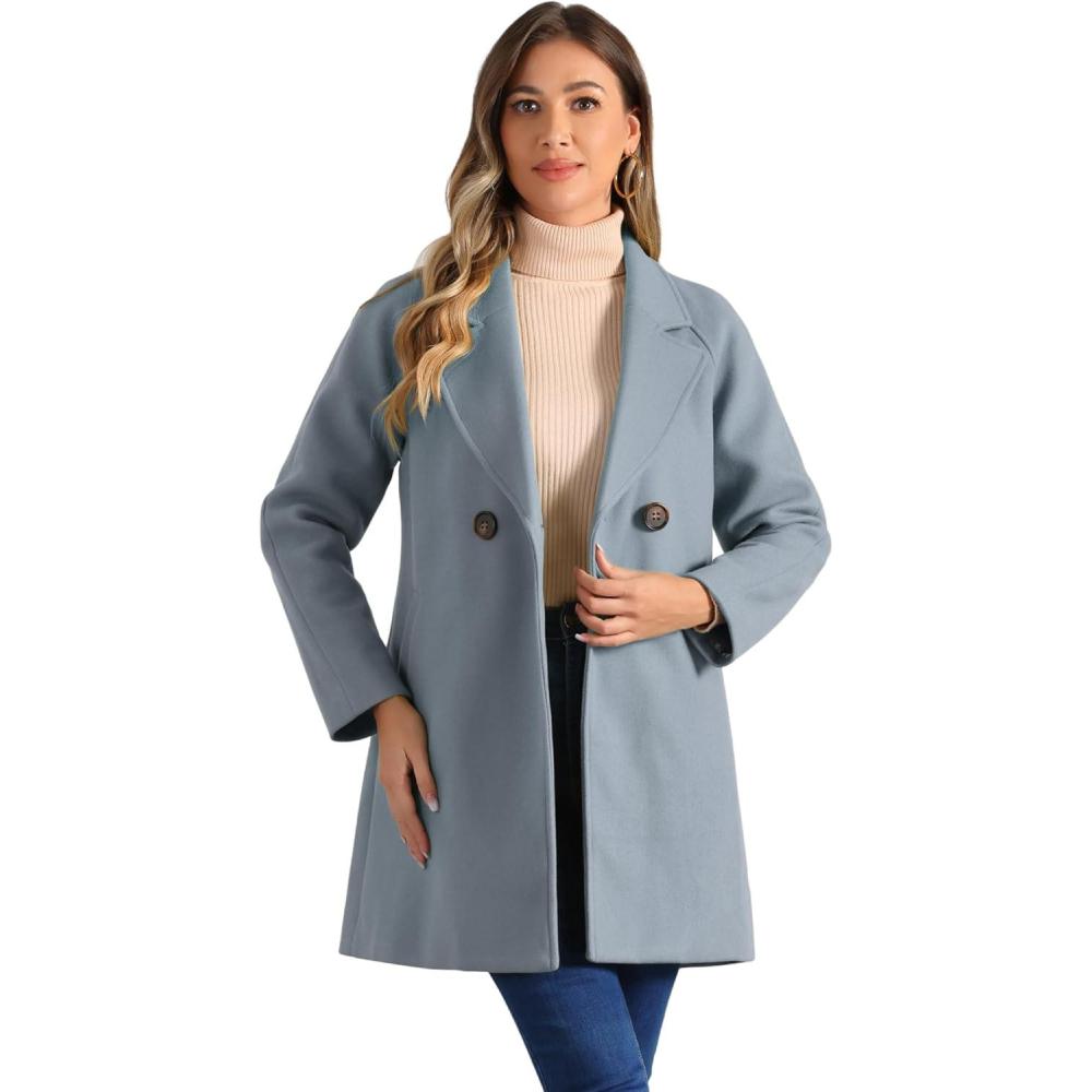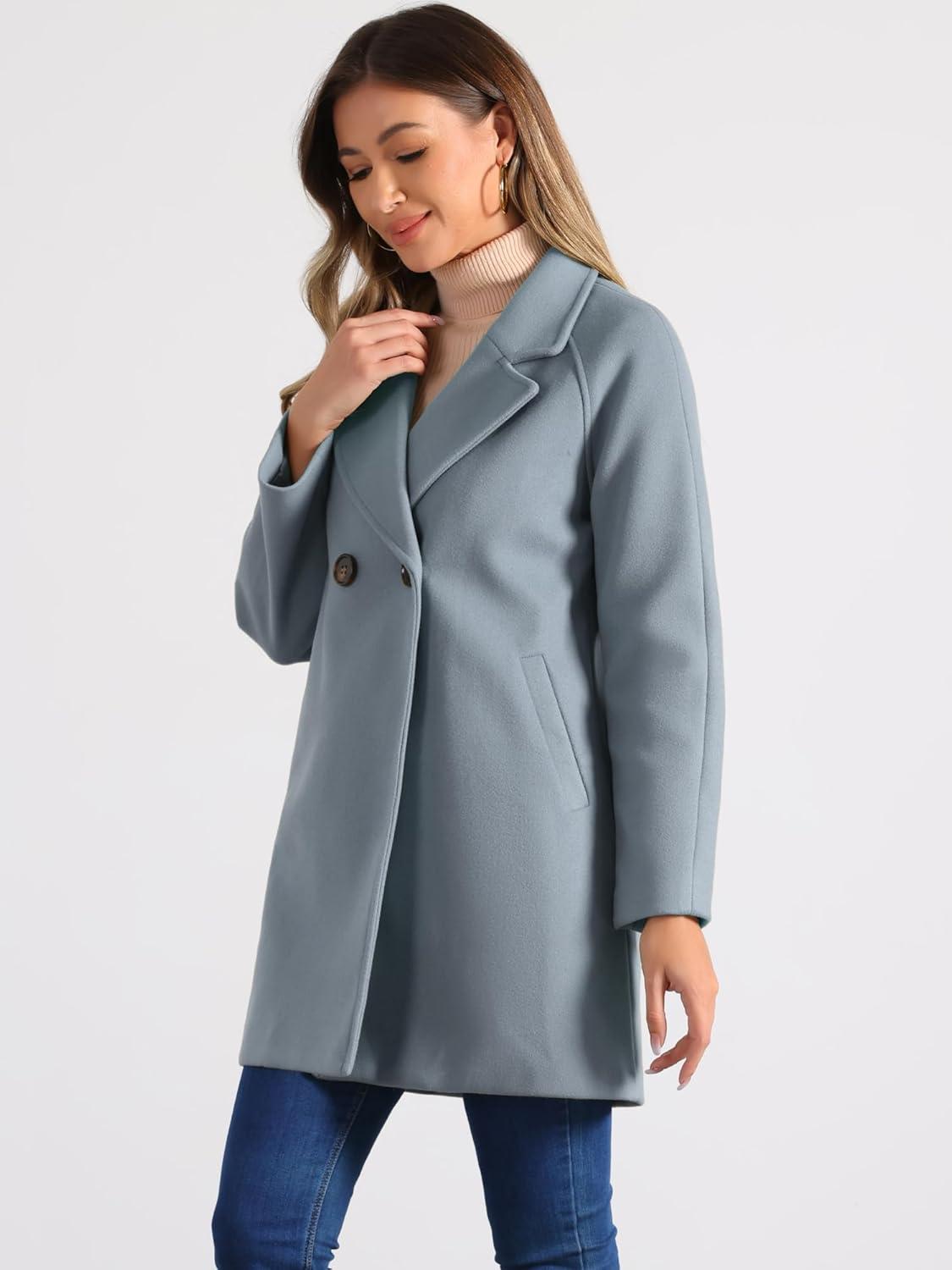 Allegra K Women’s Notched Lapel Double Breasted Raglan Winter Coats(Grey Blue)