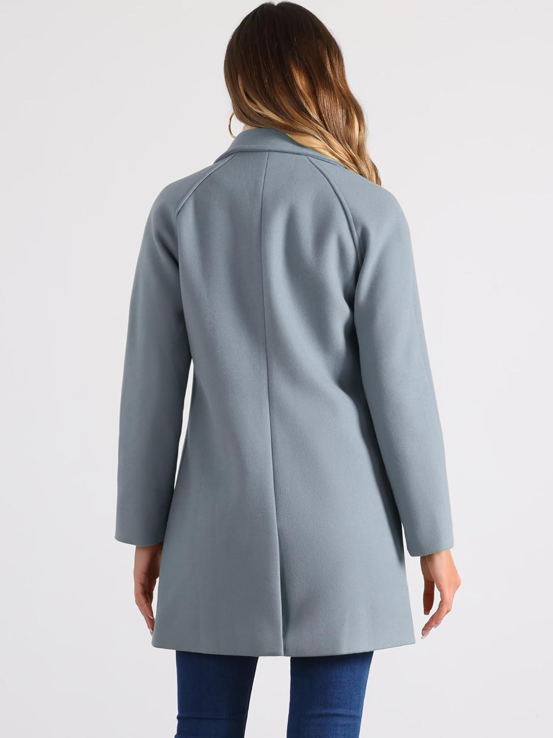 Allegra K Women's Notched Lapel Double Breasted Raglan Winter Coats(Grey Blue)