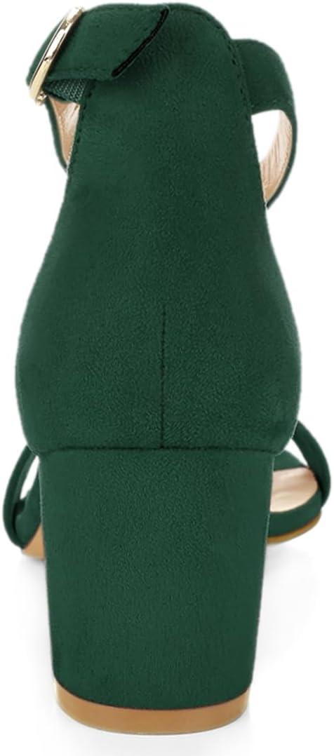 Allegra K Women’s Open Toe Block Heel Ankle Strap Sandals(Emerald Green)
