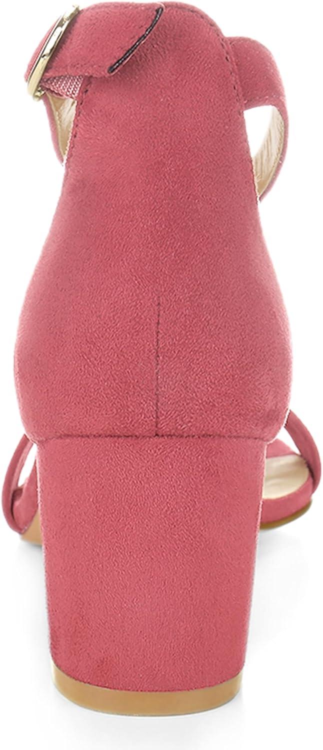 Allegra K Women’s Open Toe Block Heel Ankle Strap Sandals(Watermelon Red)