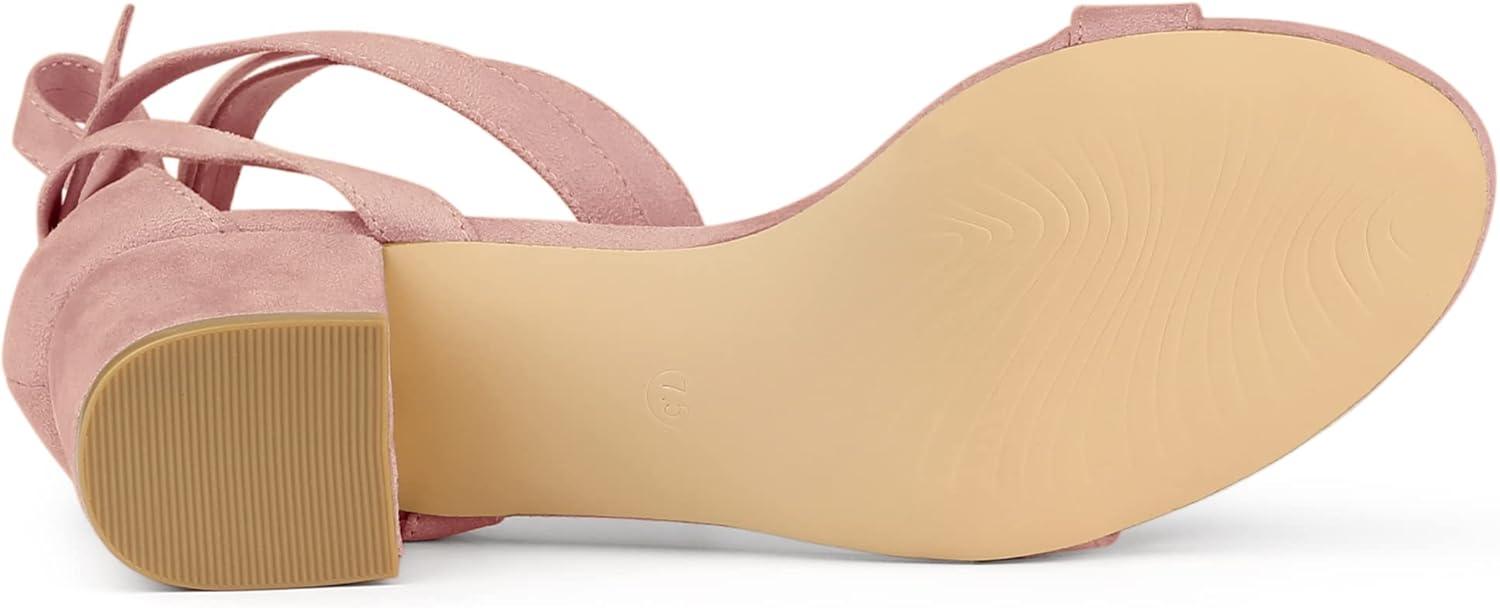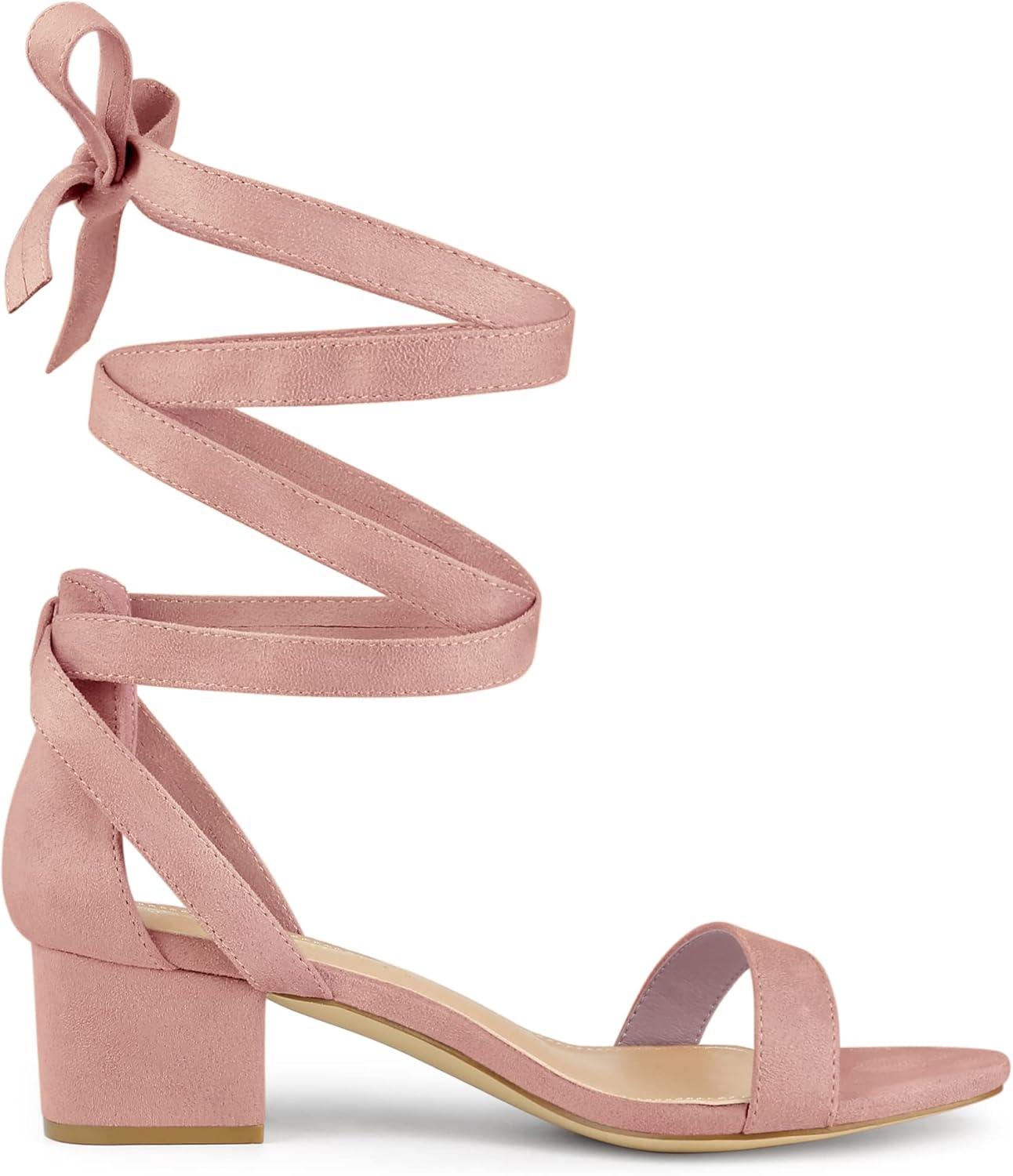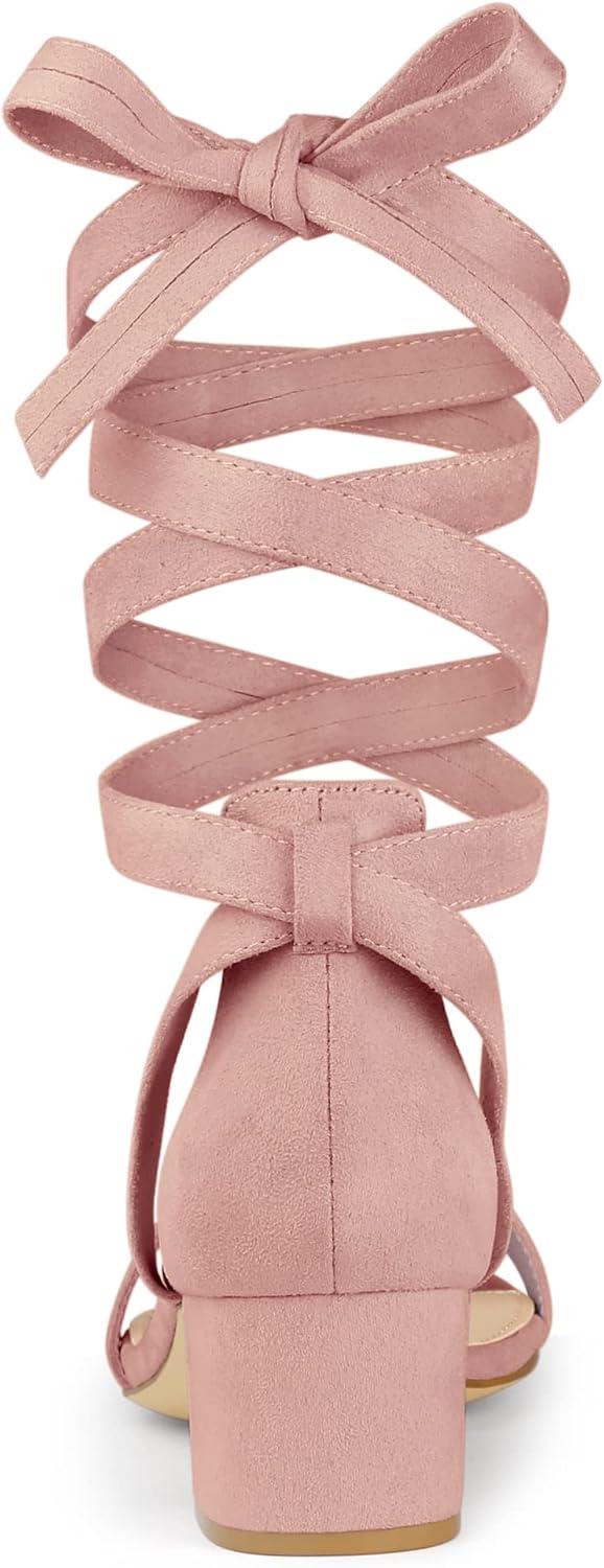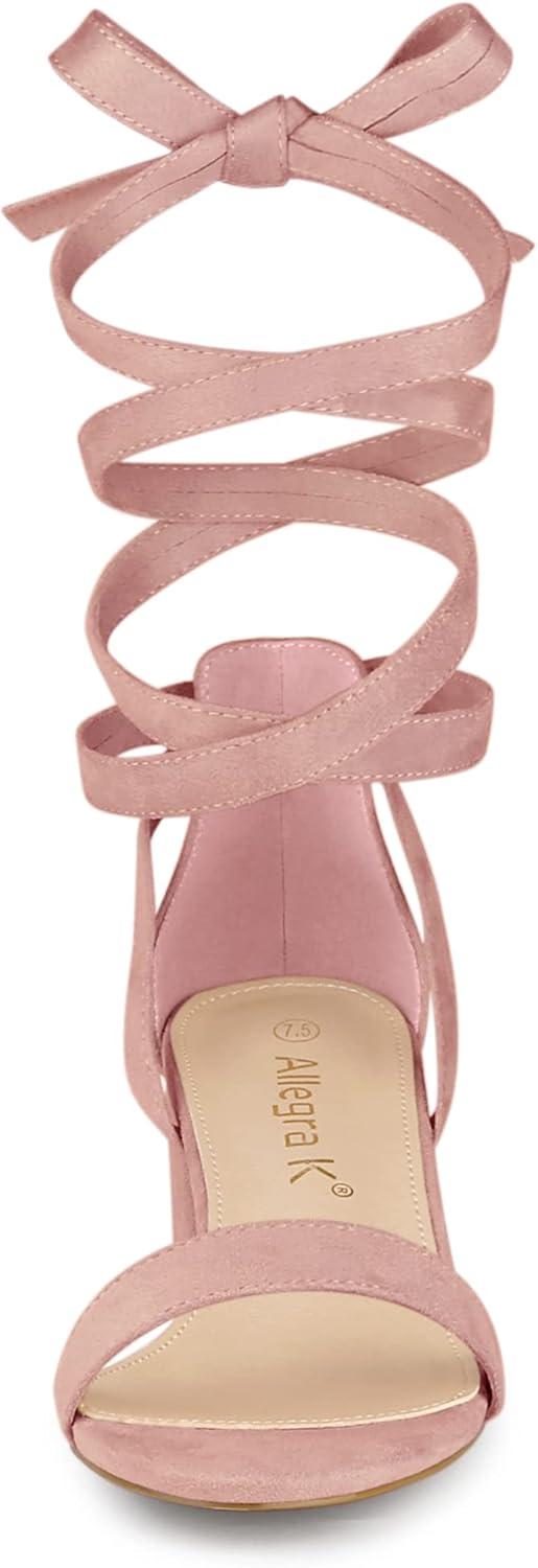 Allegra K Women’s Open Toe Block Heel Lace Up Heels Heel Sandals(Dust Pink)