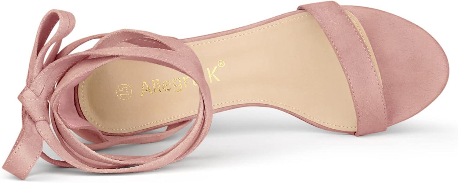 Allegra K Women's Open Toe Block Heel Lace Up Heels Heel Sandals(Dust Pink)