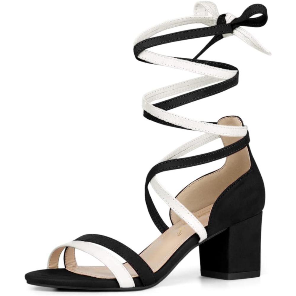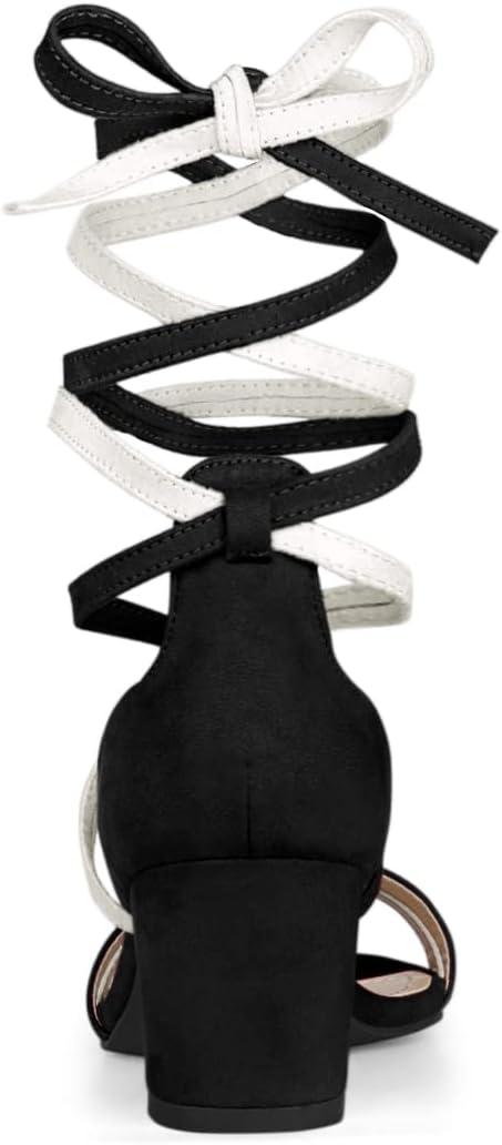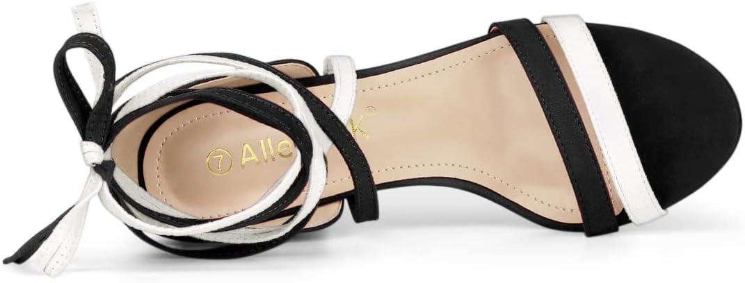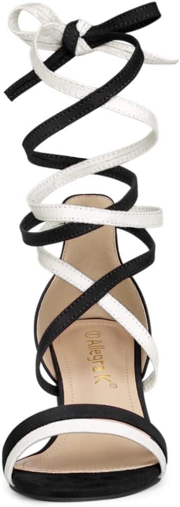 Allegra K Women’s Open Toe Color Block Heel Lace Up Sandals(Black White)