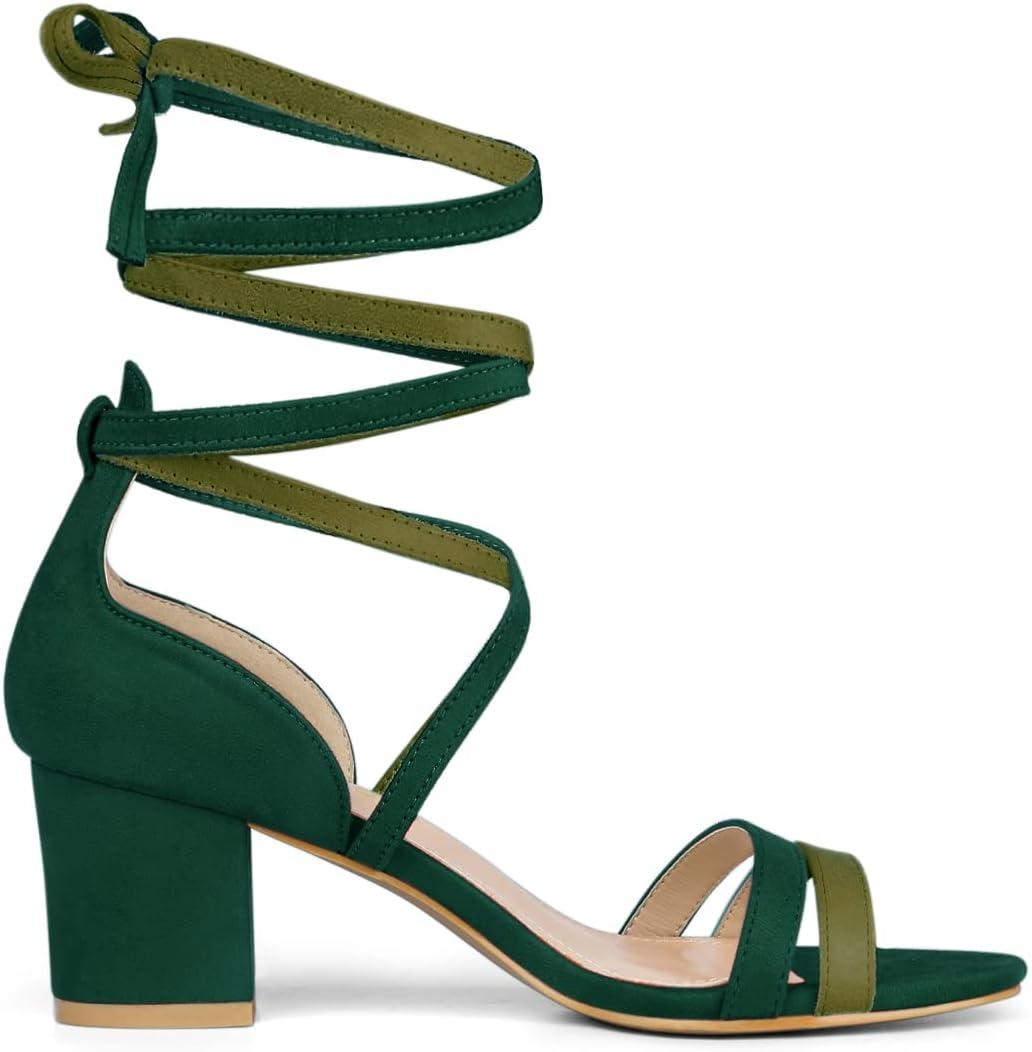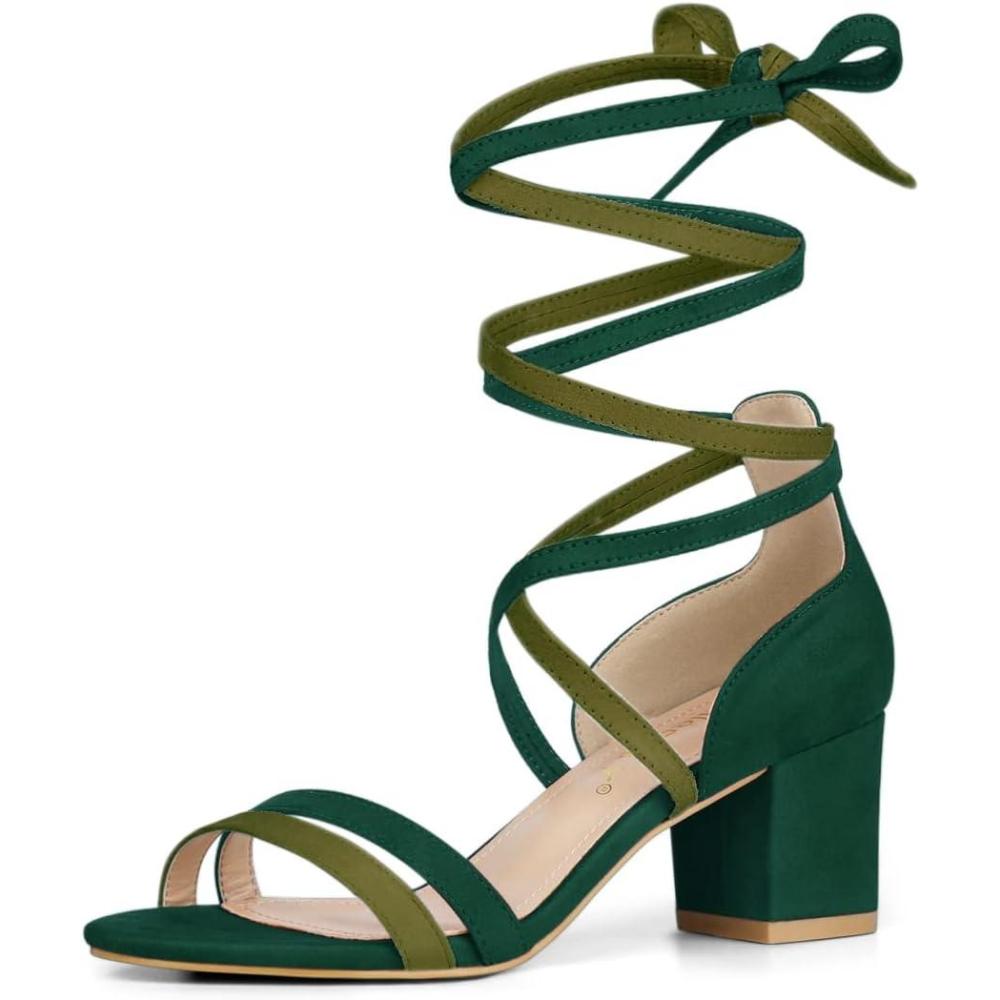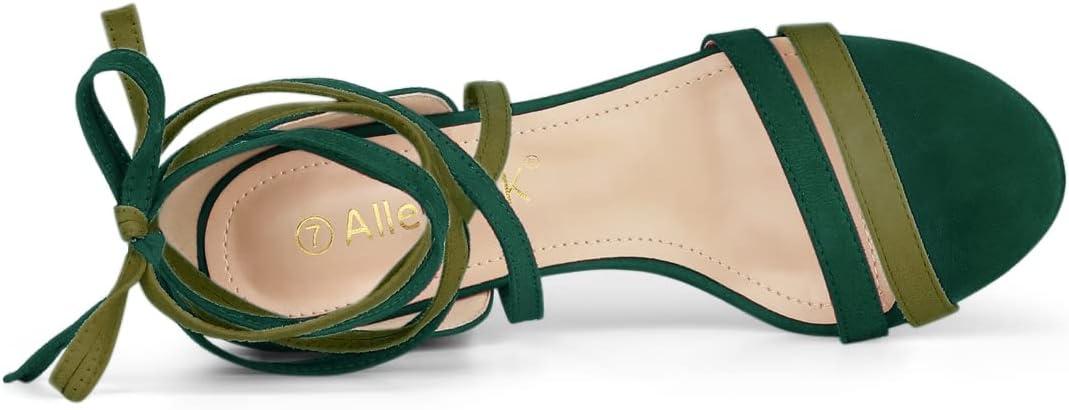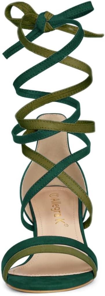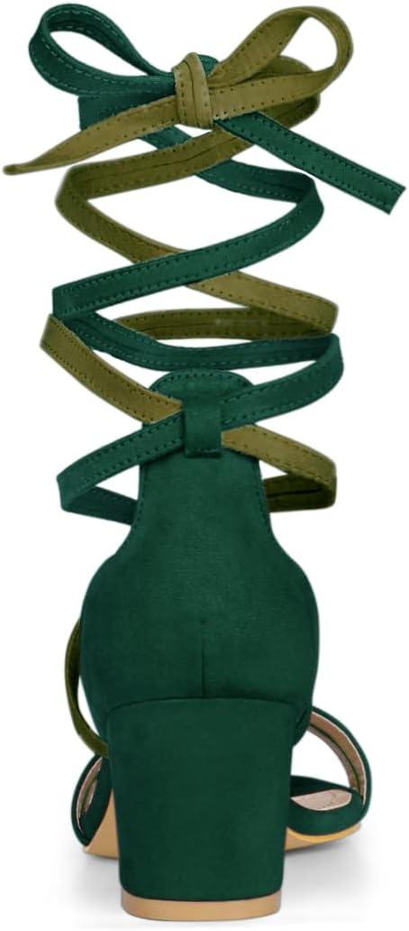 Allegra K Women’s Open Toe Color Block Heel Lace Up Sandals(Green)