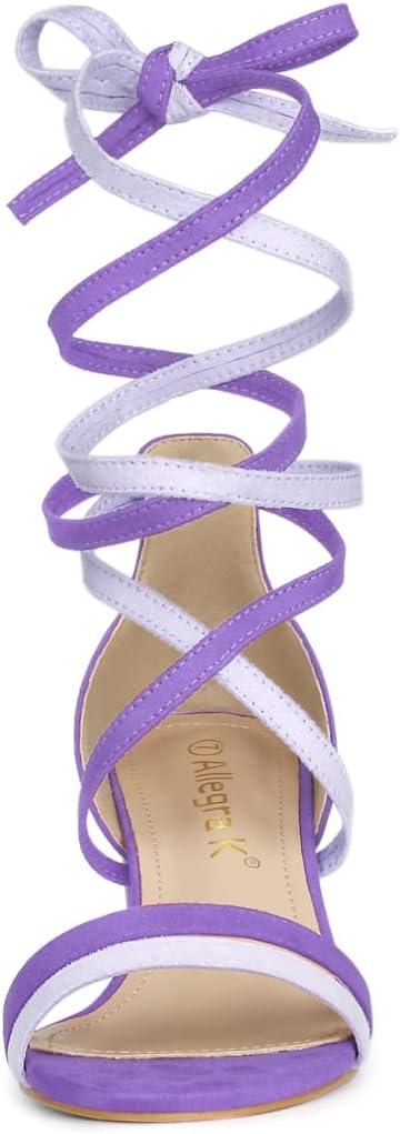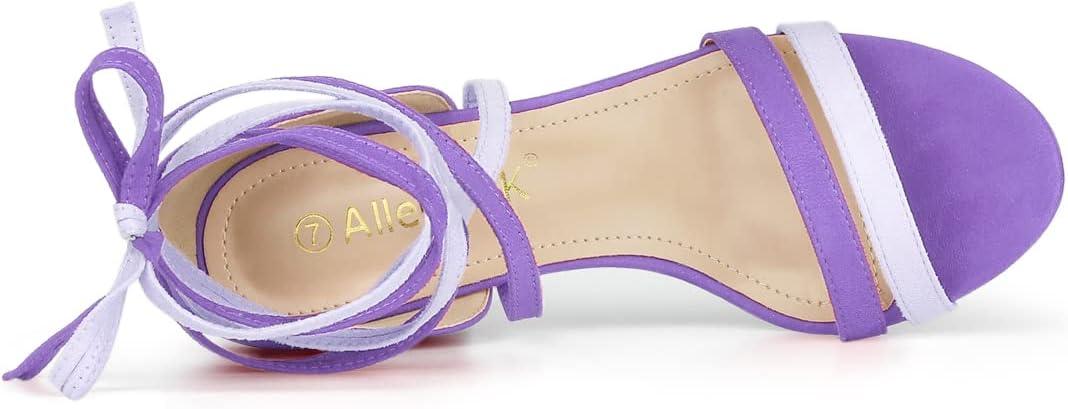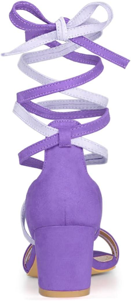 Allegra K Women’s Open Toe Color Block Heel Lace Up Sandals(Purple)