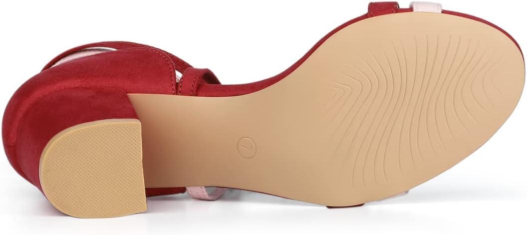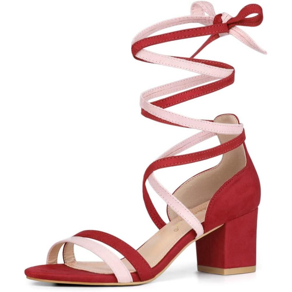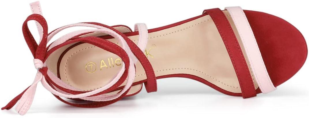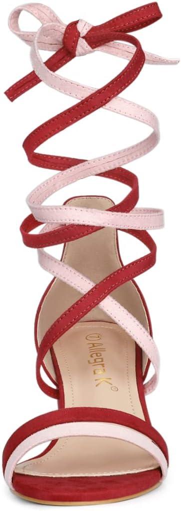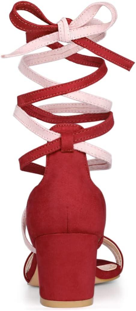 Allegra K Women’s Open Toe Color Block Heel Lace Up Sandals(Red Pink)