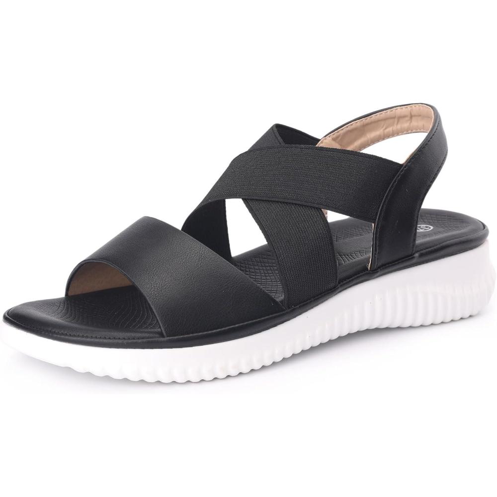 Elastic strap sandals offer comfort/modern features without compromising classic style. Flat shoes are ideal for casual walking and lounging around, and open-toe sandals have a flattering style that looks great on everyone.