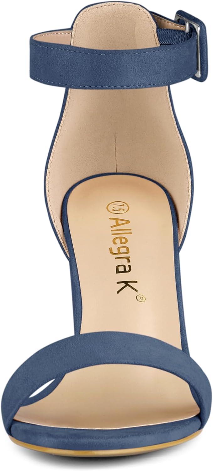 Allegra K Women’s Open Toe High Chunky Heel Buckle Ankle Strap Sandals(Haze Blue)