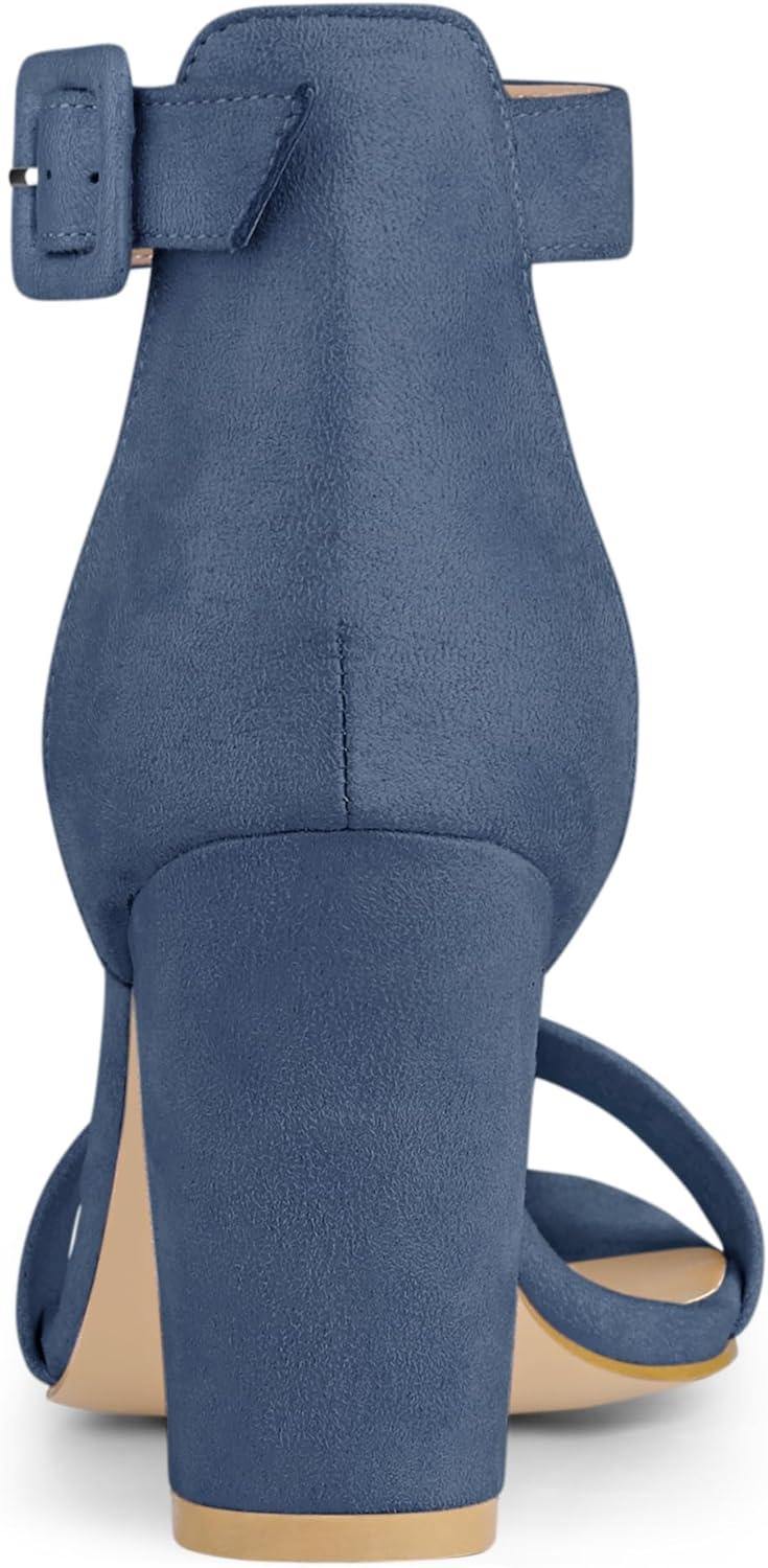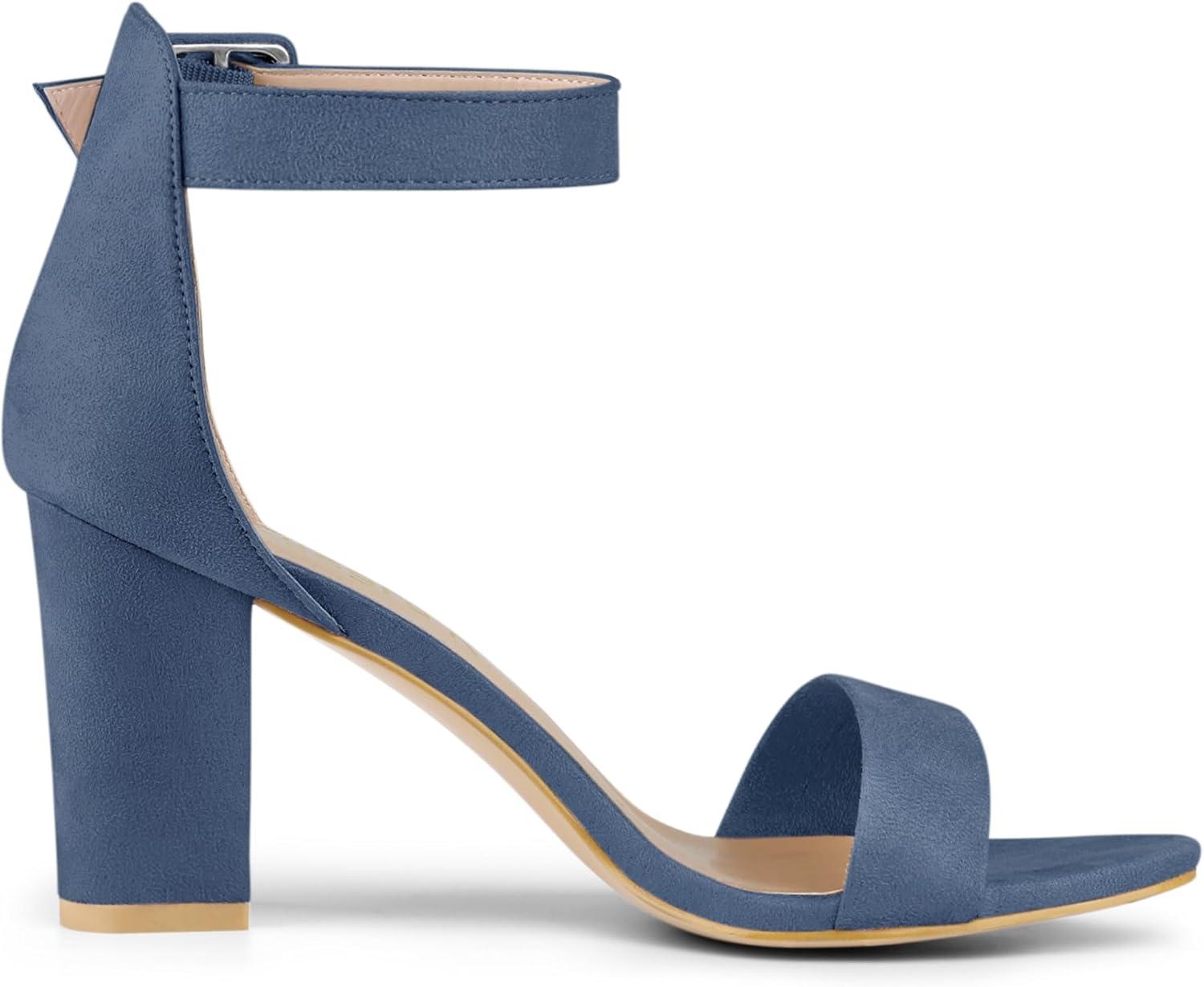 Allegra K Women's Open Toe High Chunky Heel Buckle Ankle Strap Sandals(Haze Blue)