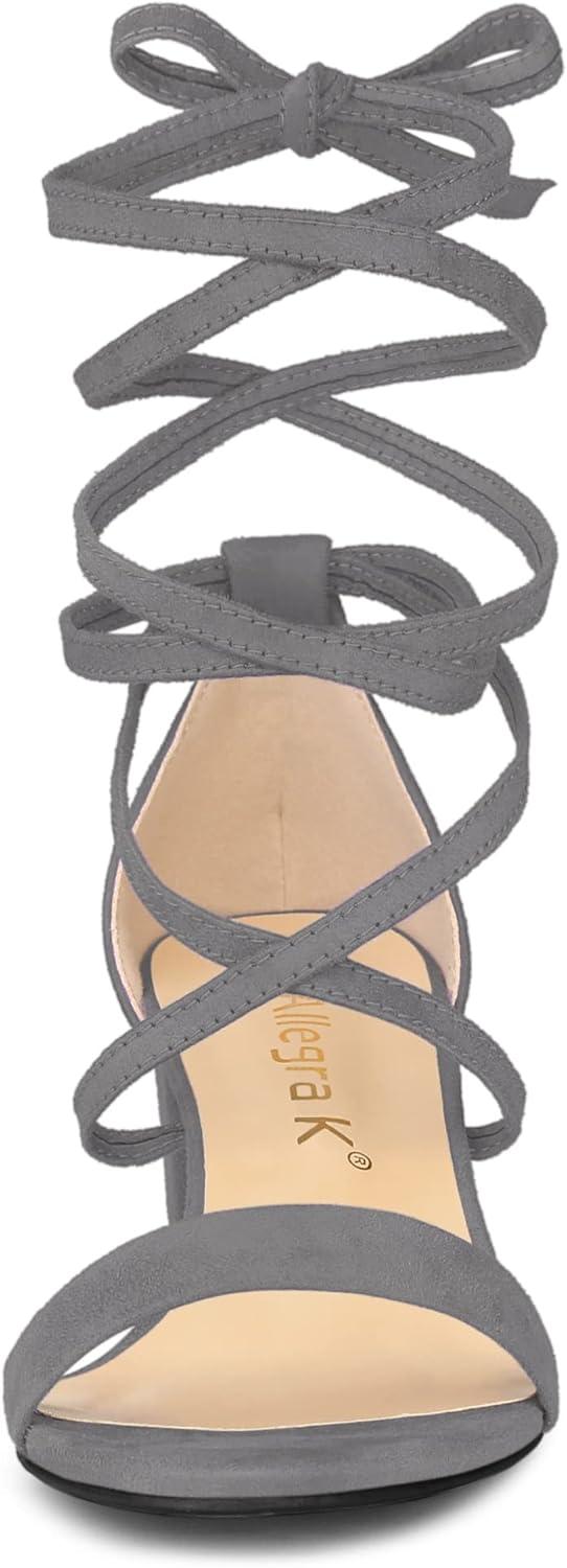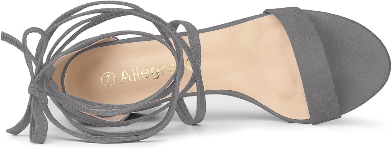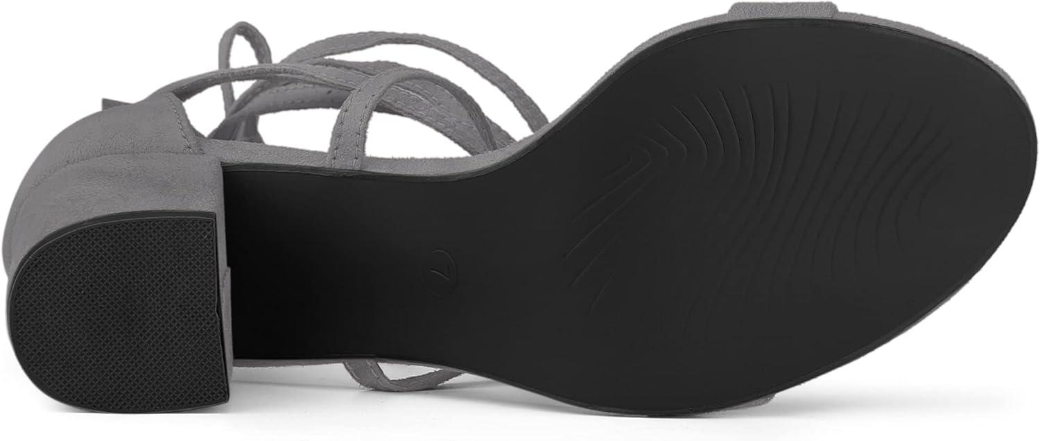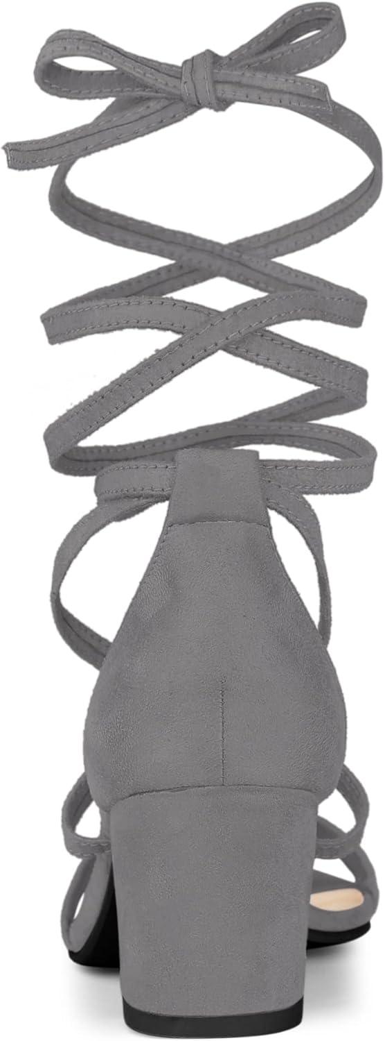 Allegra K Women’s Open Toe Lace Up Mid Chunky Heeled Sandals(Grey)