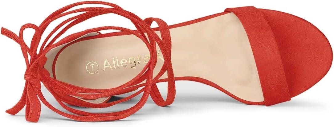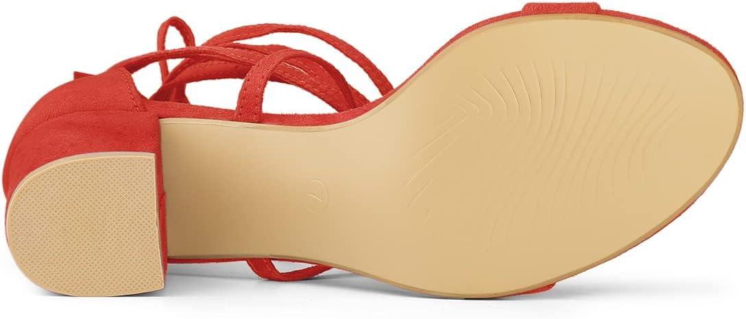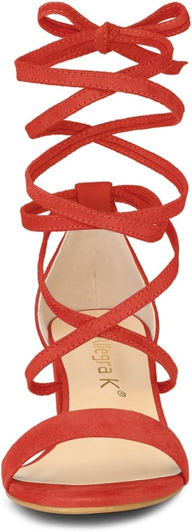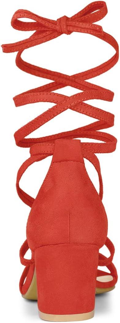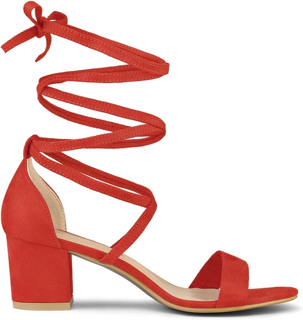 Allegra K Women’s Open Toe Lace Up Mid Chunky Heeled Sandals(Orange)