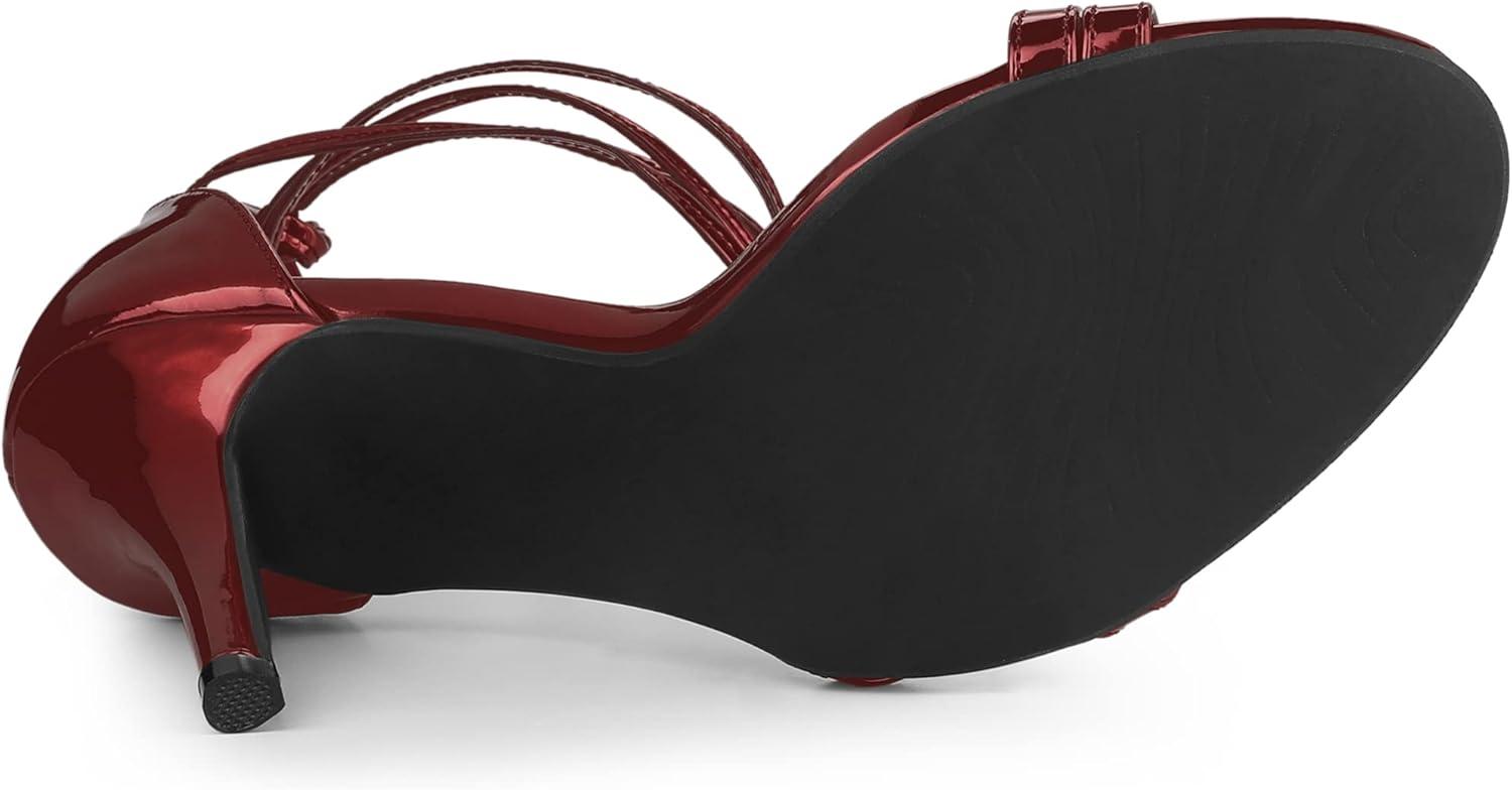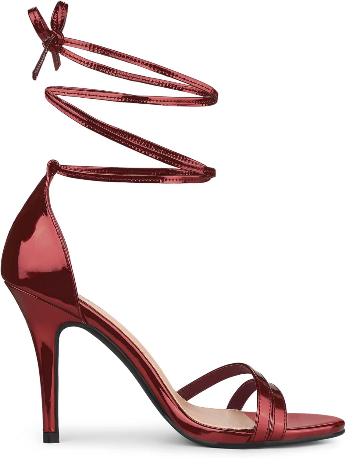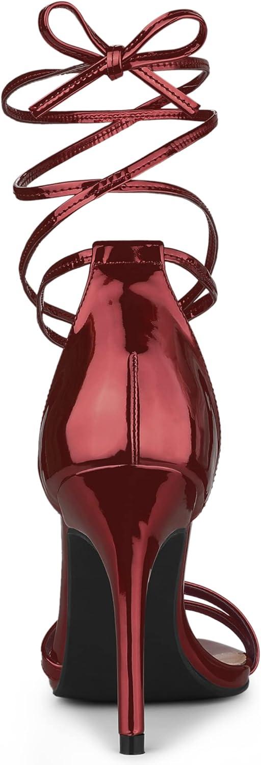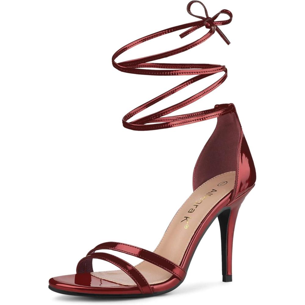 Allegra K Women’s Open Toe Lace Up Stiletto Heels Sandals(Maroon)