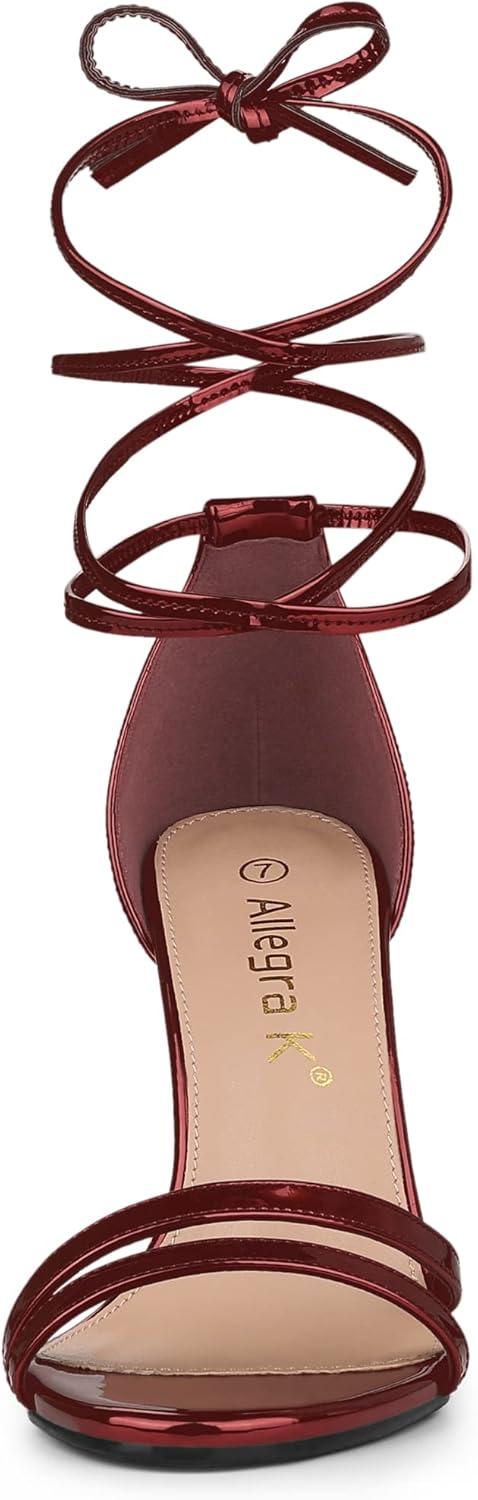 Allegra K Women's Open Toe Lace Up Stiletto Heels Sandals(Maroon)