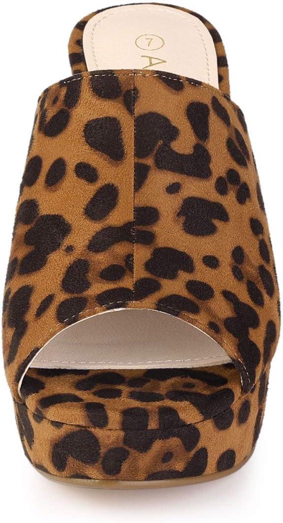 Allegra K Women's Open Toe Platform Chunky Heel Slides Sandals(Leopard)