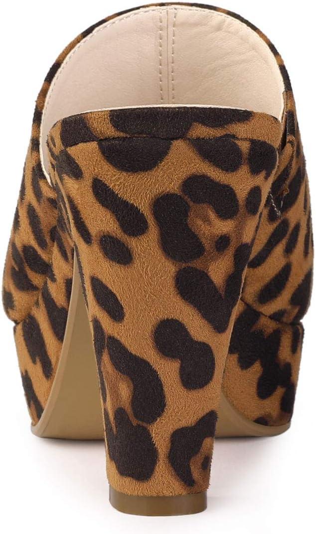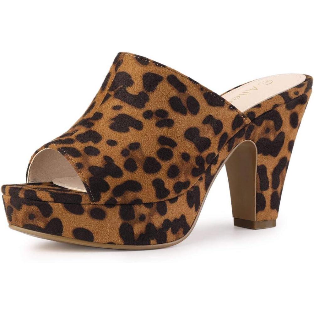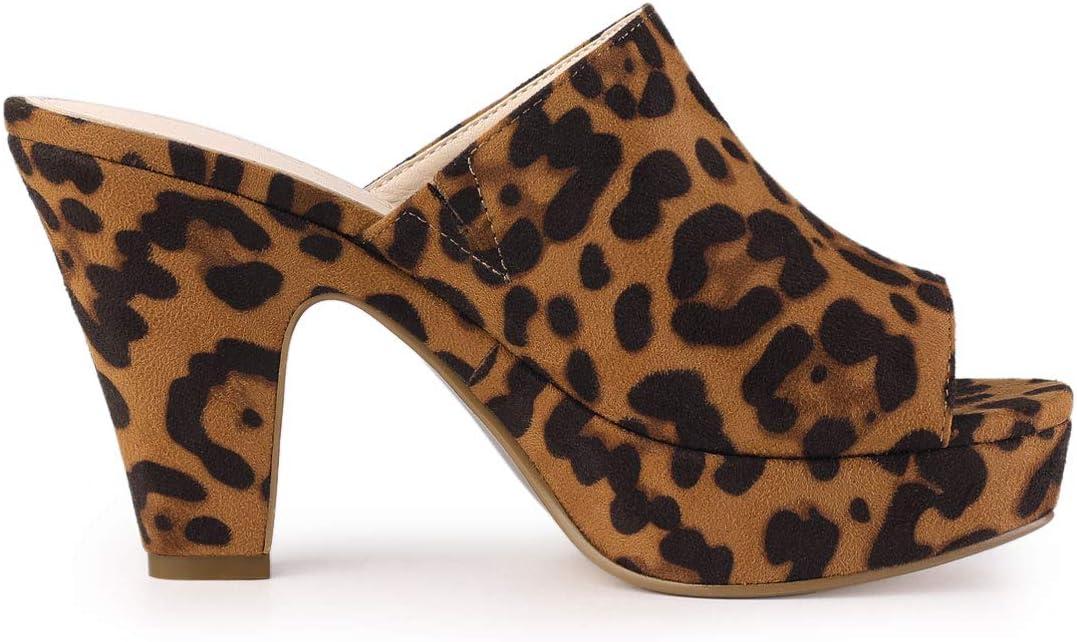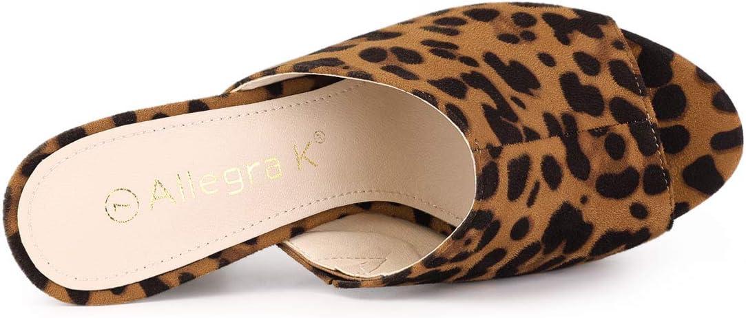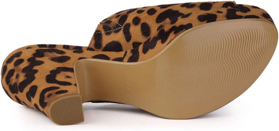 Allegra K Women’s Open Toe Platform Chunky Heel Slides Sandals(Leopard)
