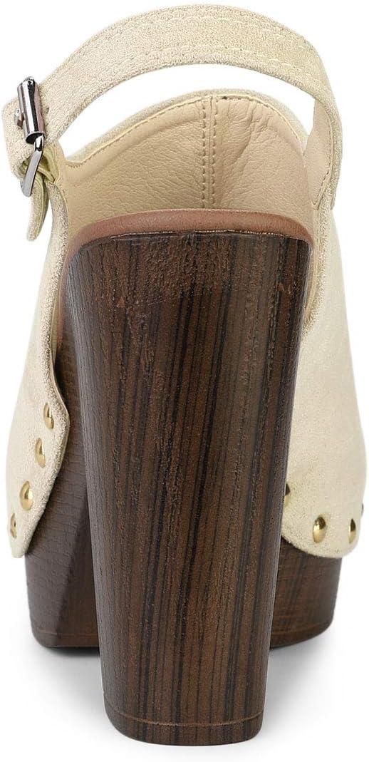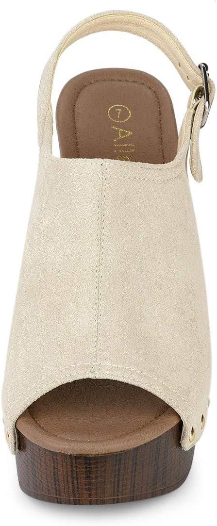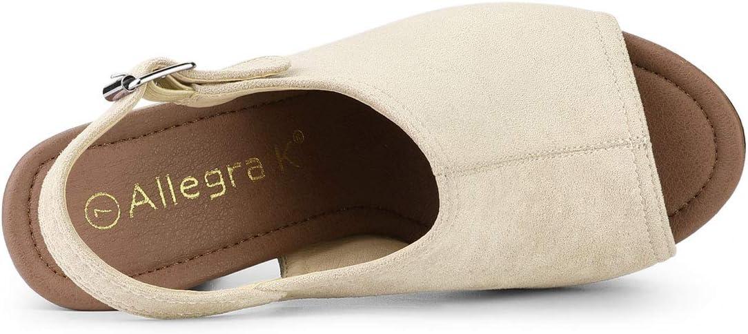 Allegra K Women's Open Toe Slingback Platform Chunky Heels Sandals(Beige)