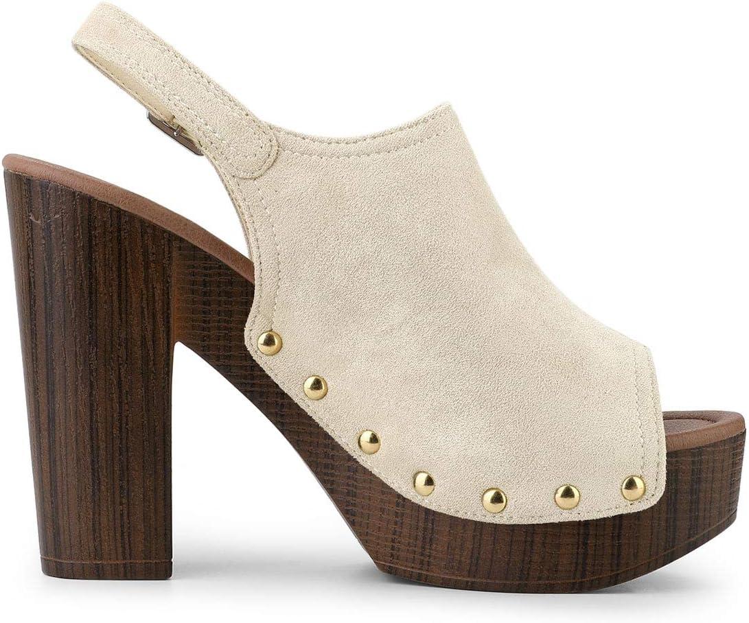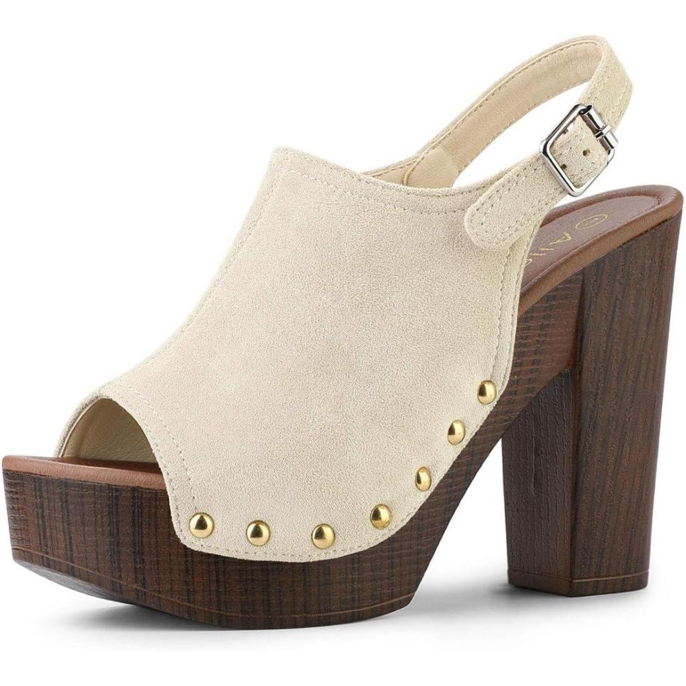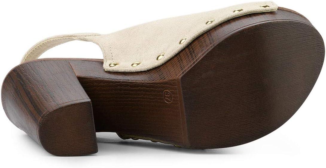 Allegra K Women’s Open Toe Slingback Platform Chunky Heels Sandals(Beige)