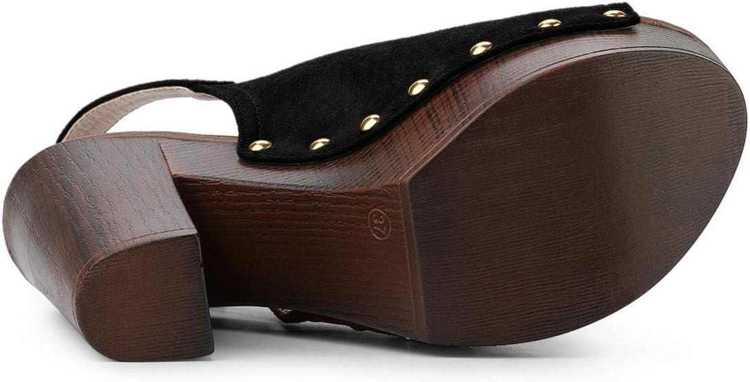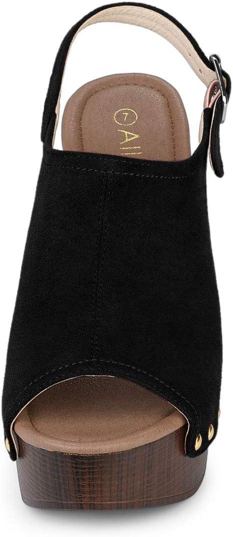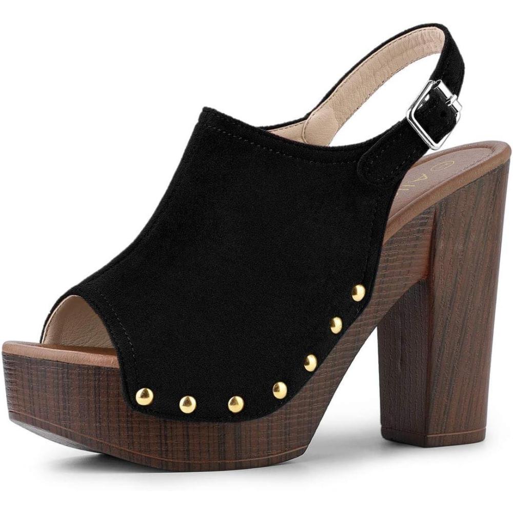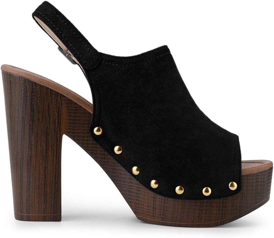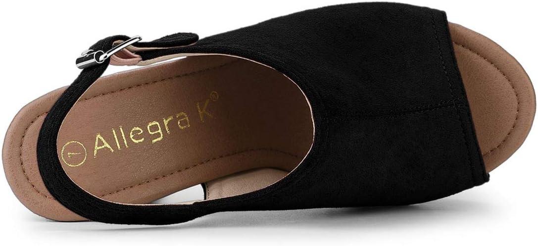 Allegra K Women’s Open Toe Slingback Platform Chunky Heels Sandals(Black)