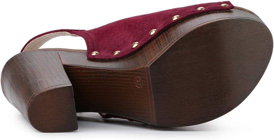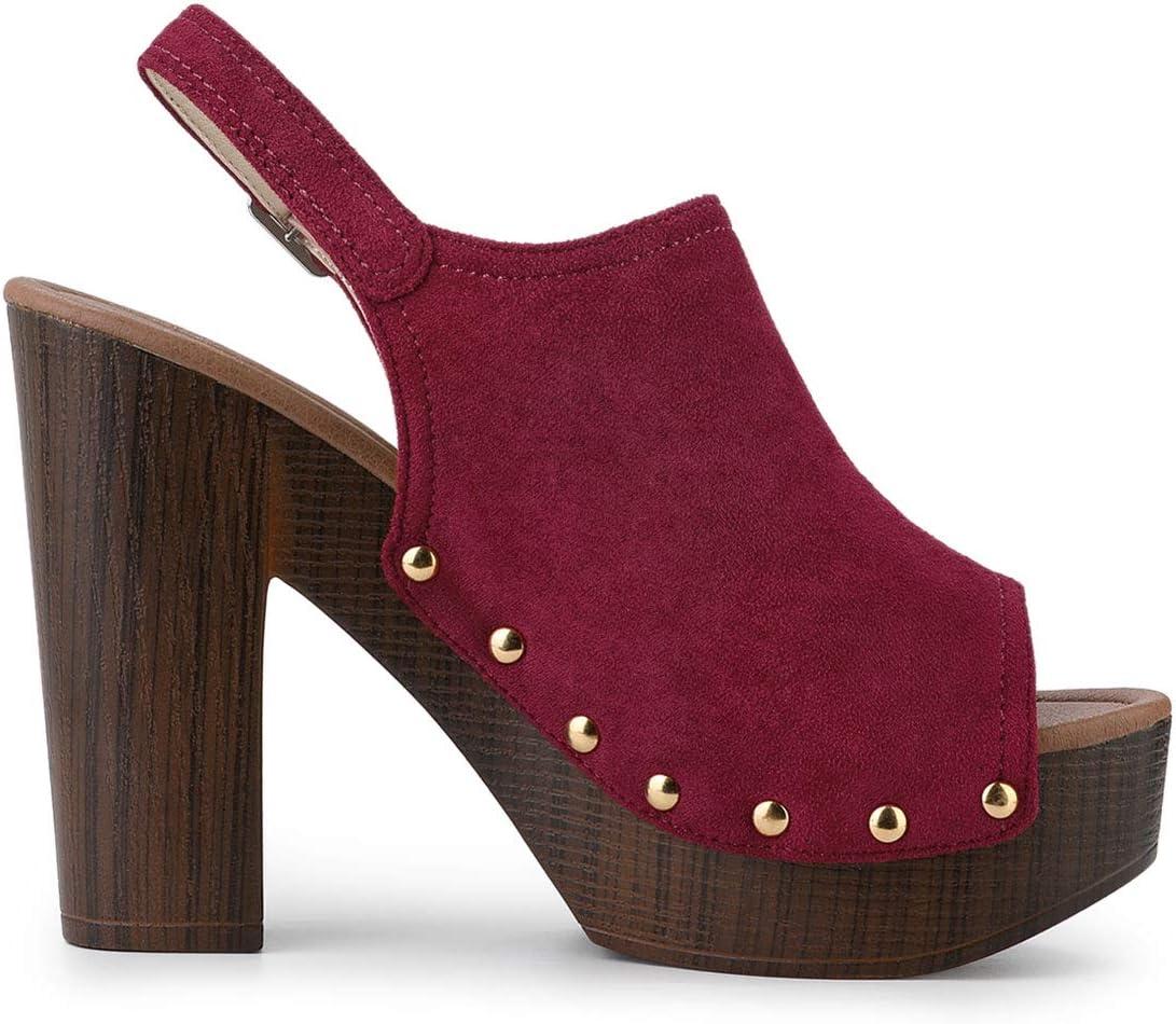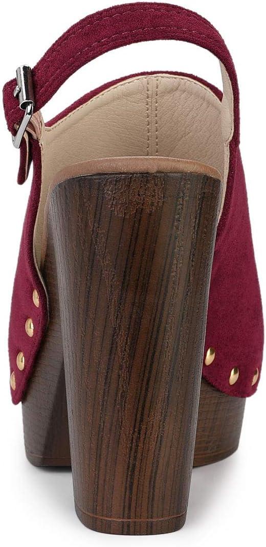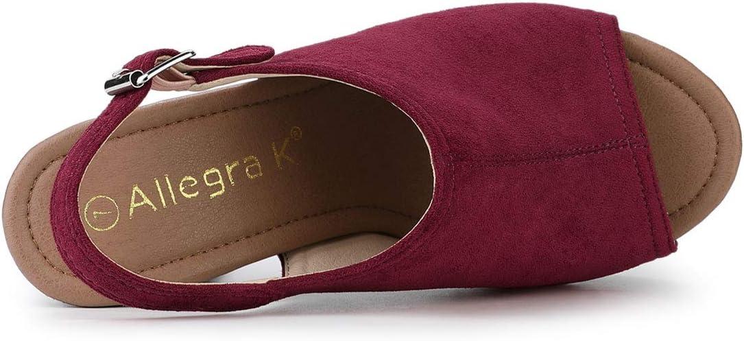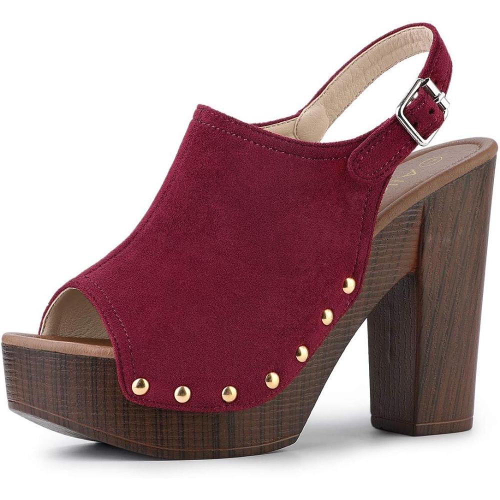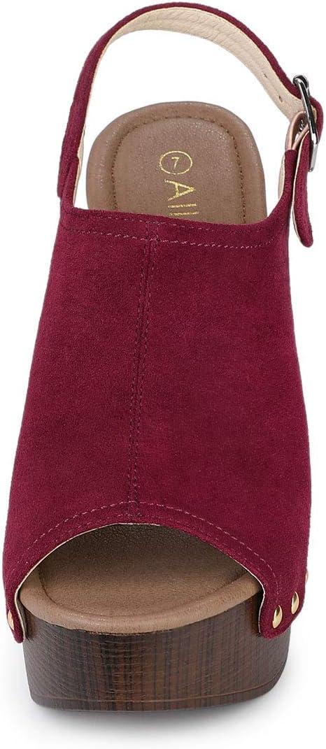 Allegra K Women’s Open Toe Slingback Platform Chunky Heels Sandals(Burgundy)