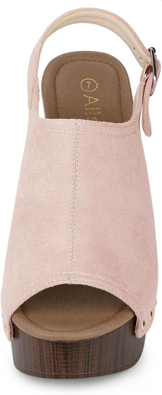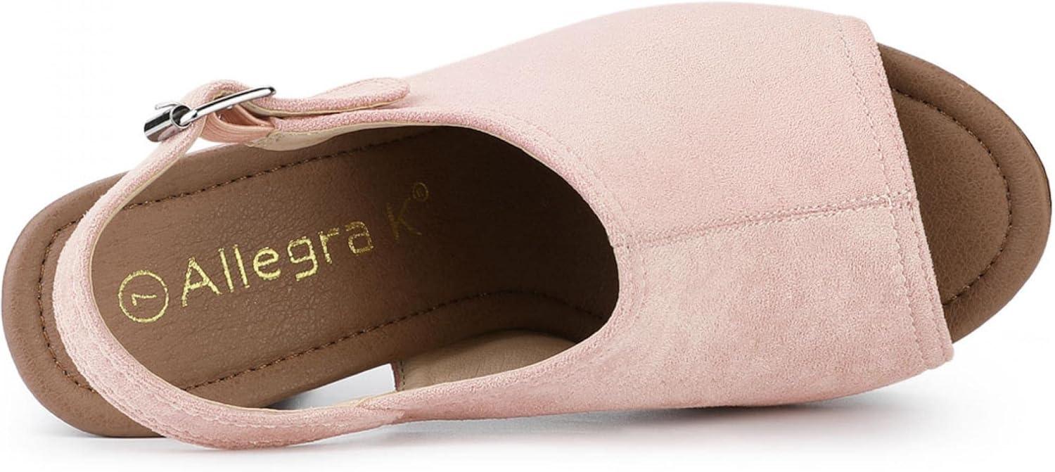 Allegra K Women's Open Toe Slingback Platform Chunky Heels Sandals(Dust Pink)