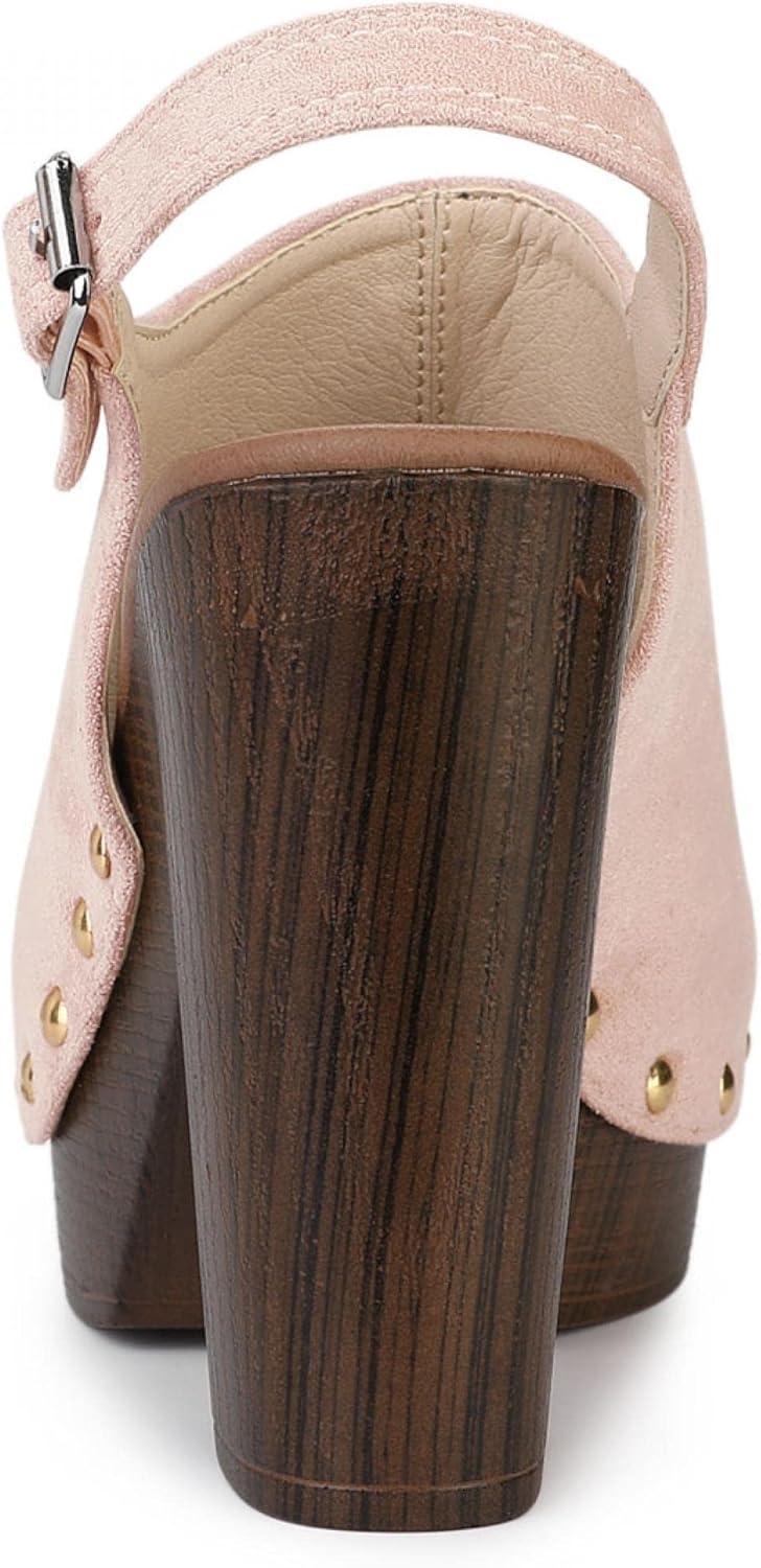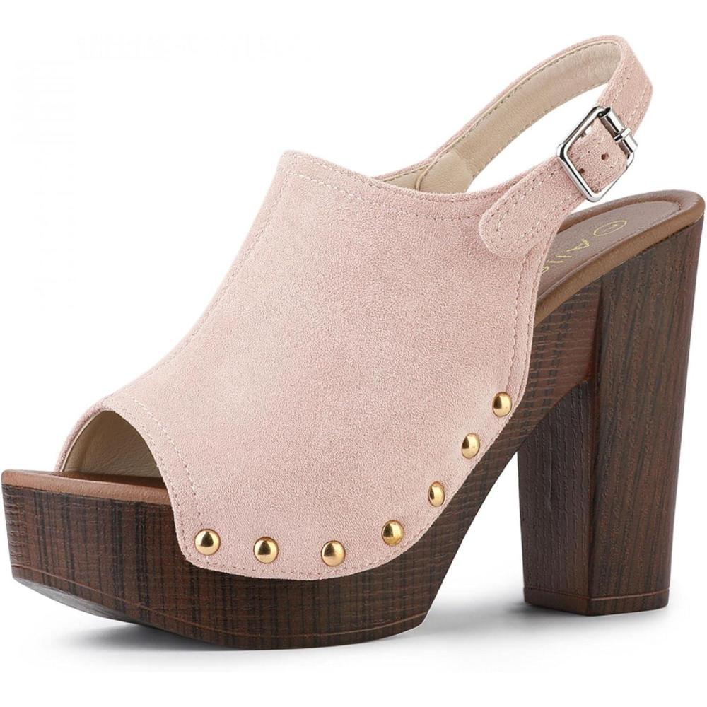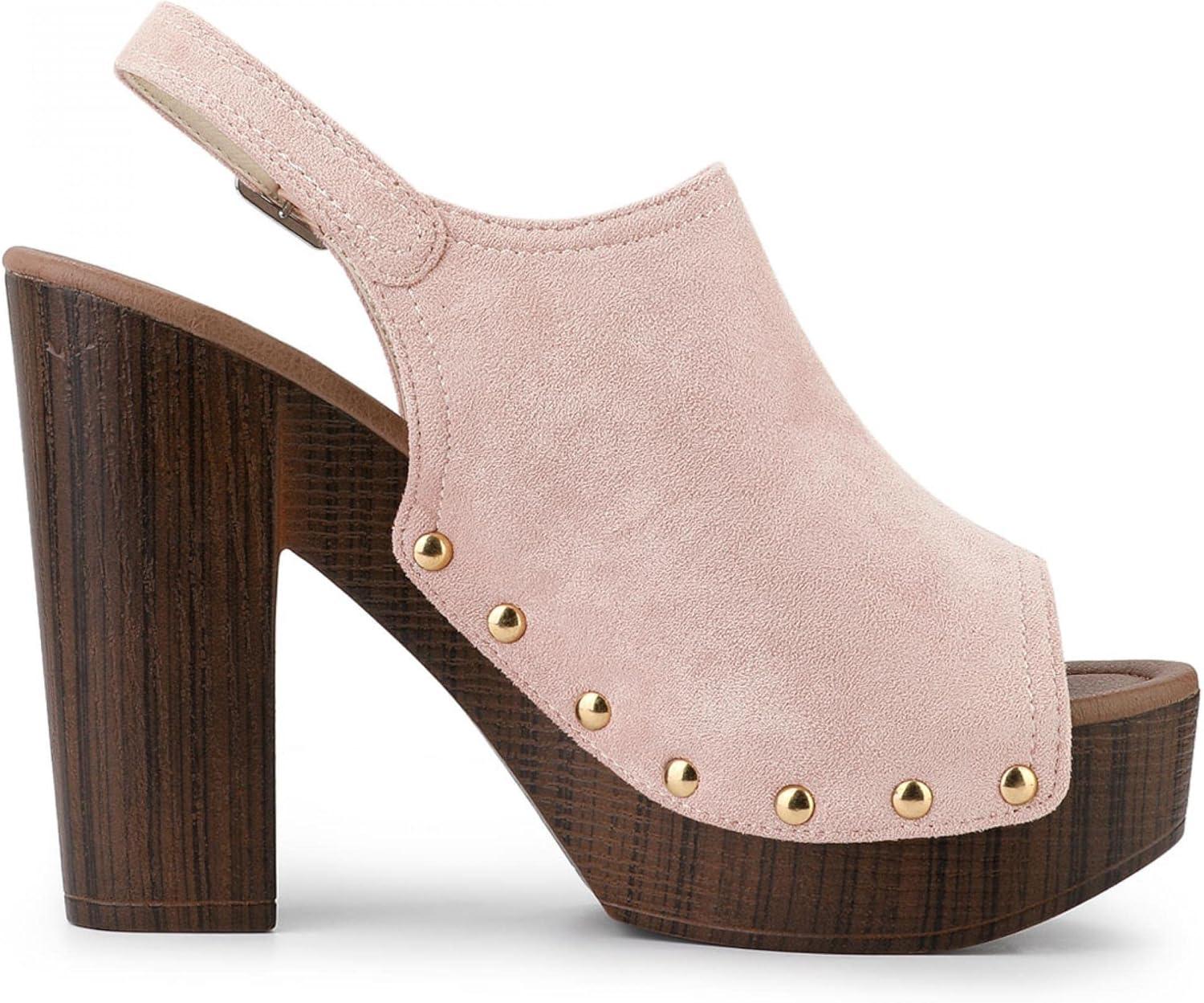 Allegra K Women’s Open Toe Slingback Platform Chunky Heels Sandals(Dust Pink)