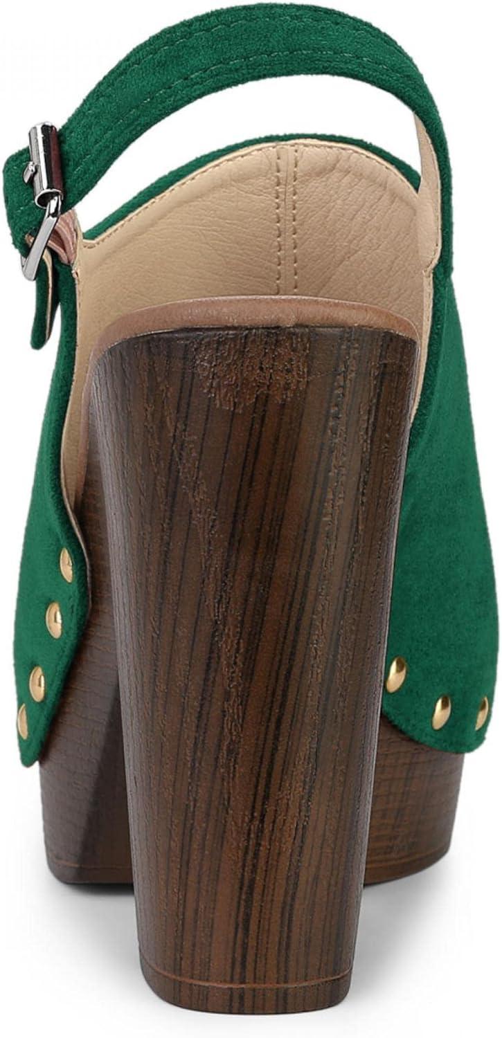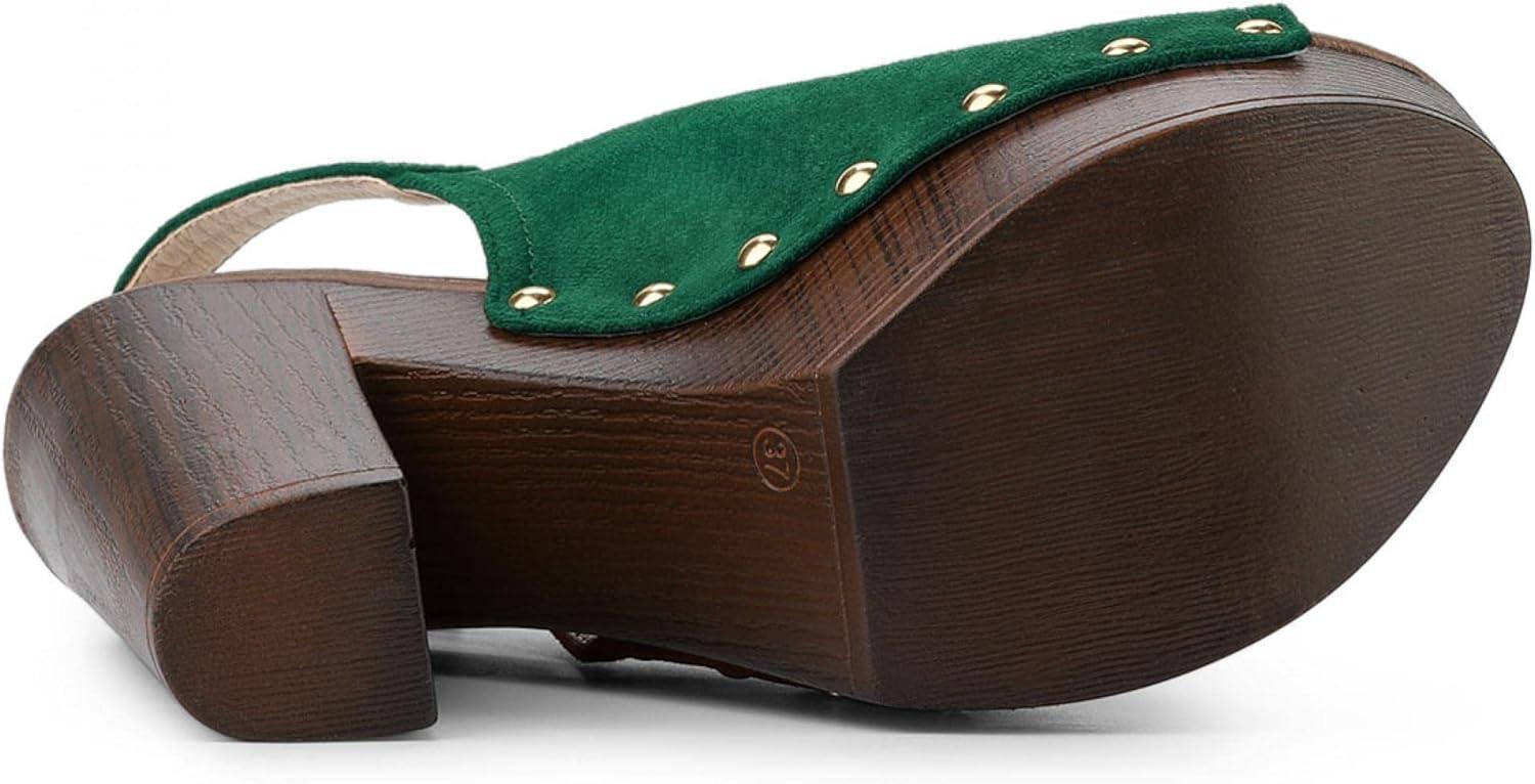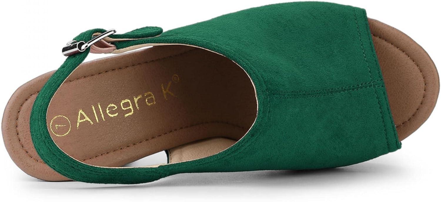 Allegra K Women’s Open Toe Slingback Platform Chunky Heels Sandals(Green)
