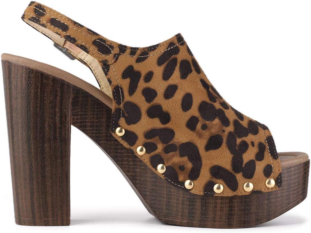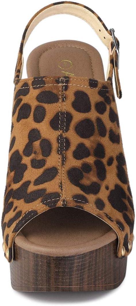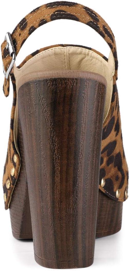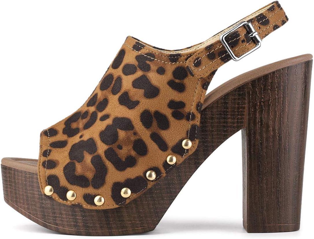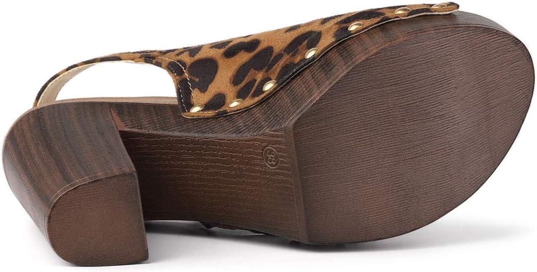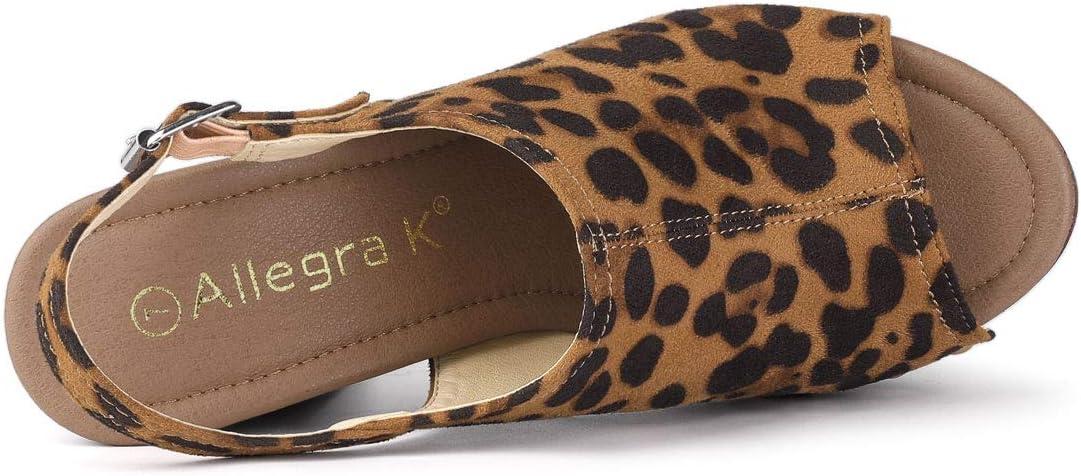 Allegra K Women’s Open Toe Slingback Platform Chunky Heels Sandals(Leopard)
