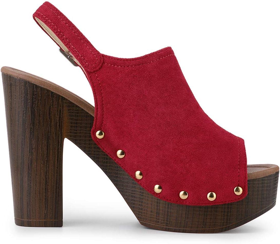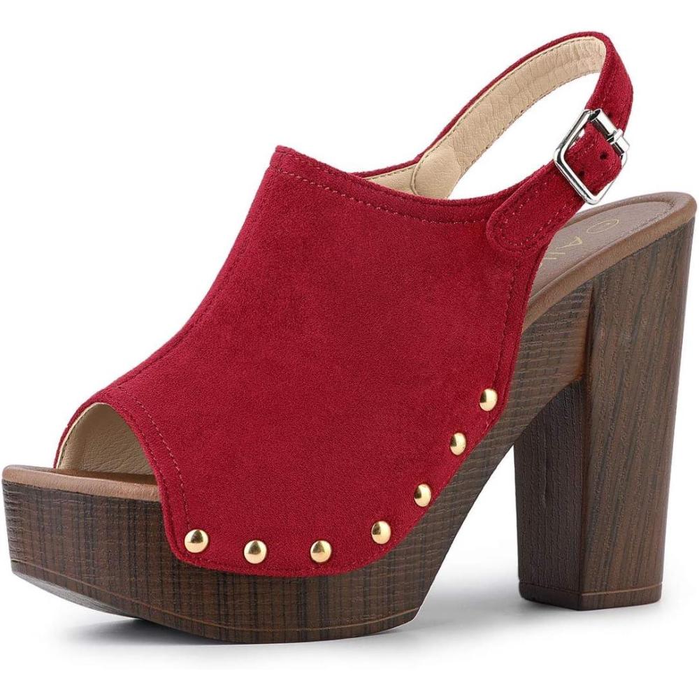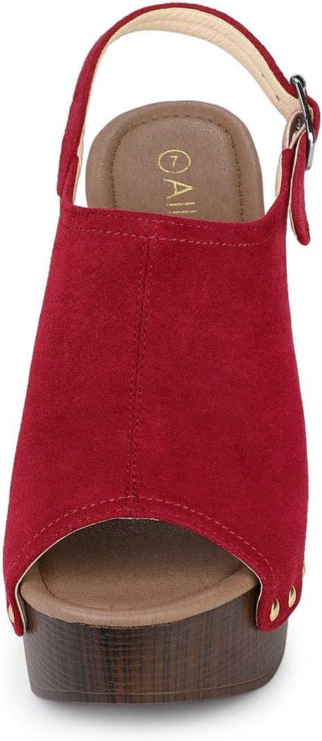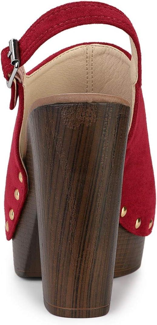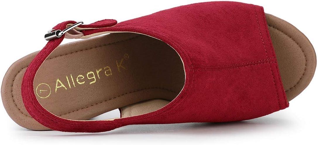Allegra K Women’s Open Toe Slingback Platform Chunky Heels Sandals(Red)