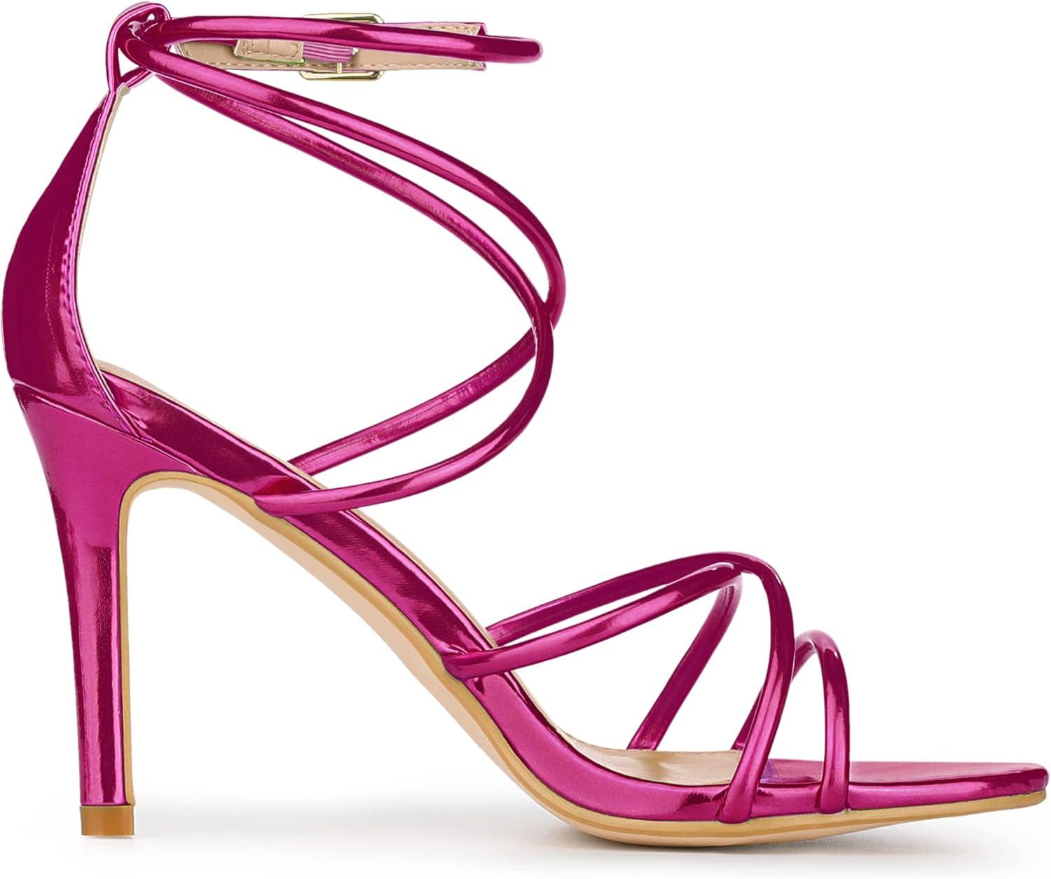 Allegra K Women’s Open Toe Strappy Straps Stiletto Heel Hot Pink Sandals 9 M US