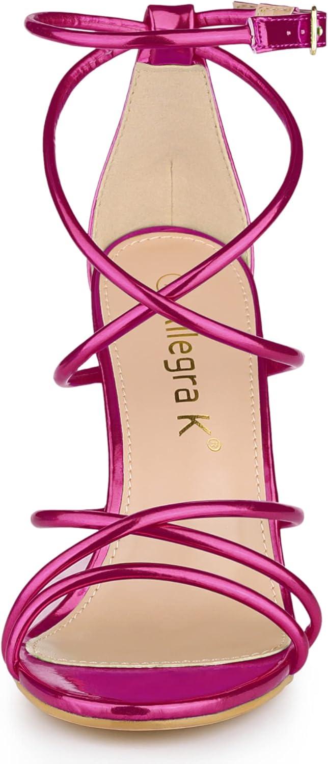 Allegra K Women’s Open Toe Strappy Straps Stiletto Heel Hot Pink Sandals 7 M US
